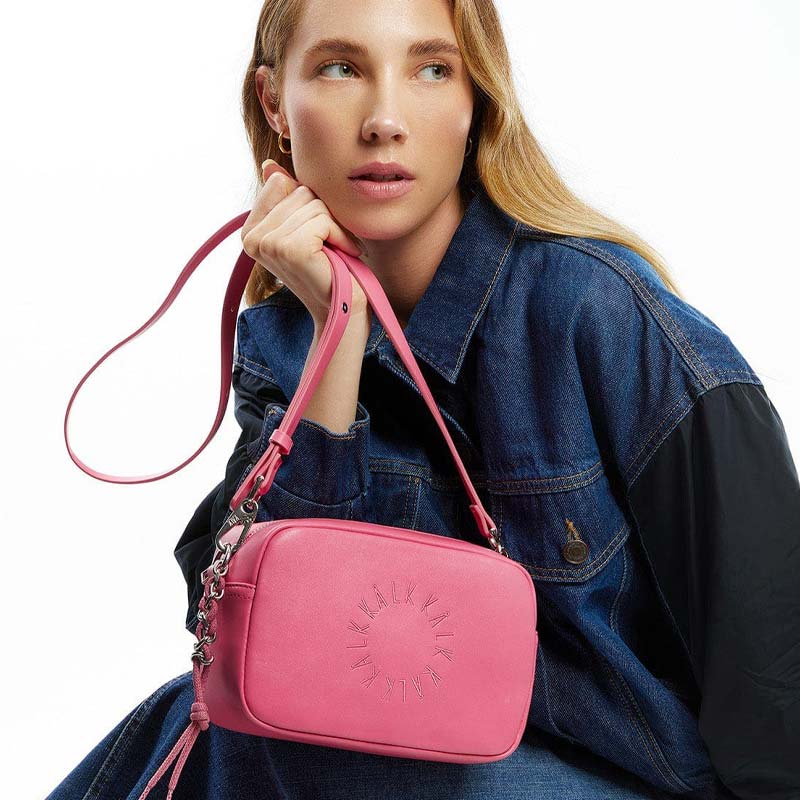 – Η Kalk παρουσιάζει τη νέα της συλλογή Bags Premium Edition. Μια συλλογή εμπνευσμένη από το στυλ του Παρισιού, με εμβληματικά και διαχρονικά μοντέλα. Αποκλειστικές τσάντες με εξαιρετική ποιότητα, που θα αναδείξουν το στυλ των εμφανίσεων σας. Το μοντέλο Crossbody Bag Fuchsia Kalk χαρακτηρίζεται από το μεσαίο και ορθογώνιο σχήμα του και τη ρυθμιζόμενη χιαστί λαβή του. Σχεδιασμένο από συνθετικό δέρμα , διαθέτει ένα κεντημένο λογότυπο της μάρκας με ανάγλυφο εφέ τόνου σε τόνο και μια ασημένια λεπτομέρεια αλυσίδας με μπερδεμένο κορδόνι . Εσωτερικό μεγάλης χωρητικότητας, με επένδυση στον ίδιο χρώμα με το εξωτερικό λογότυπο, διαθέτει τσέπη και λεπτομέρεια ετικέτας. Κλείσιμο με ασημί φερμουάρ.
