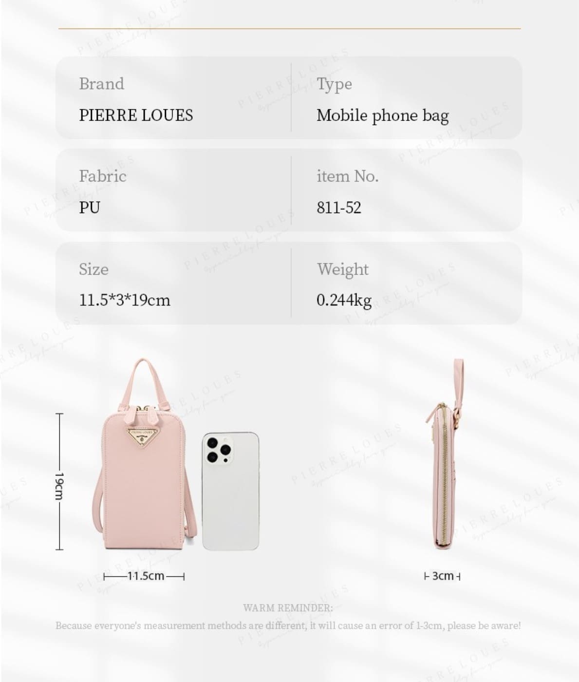 -Όλα τα προϊόντα Pierre Loues δημιουργήθηκαν από κορυφαίους Γάλλους σχεδιαστές . Η PIERRE LOUES ειδικεύεται στην έρευνα, ανάπτυξη, σχεδιασμό και παραγωγή γυναικείων πορτοφολιών υψηλής ποιότητας, μικρών σακιδίων πλάτης, τσάντες ταχυδρομικών, τσαντών και ούτω καθεξής.