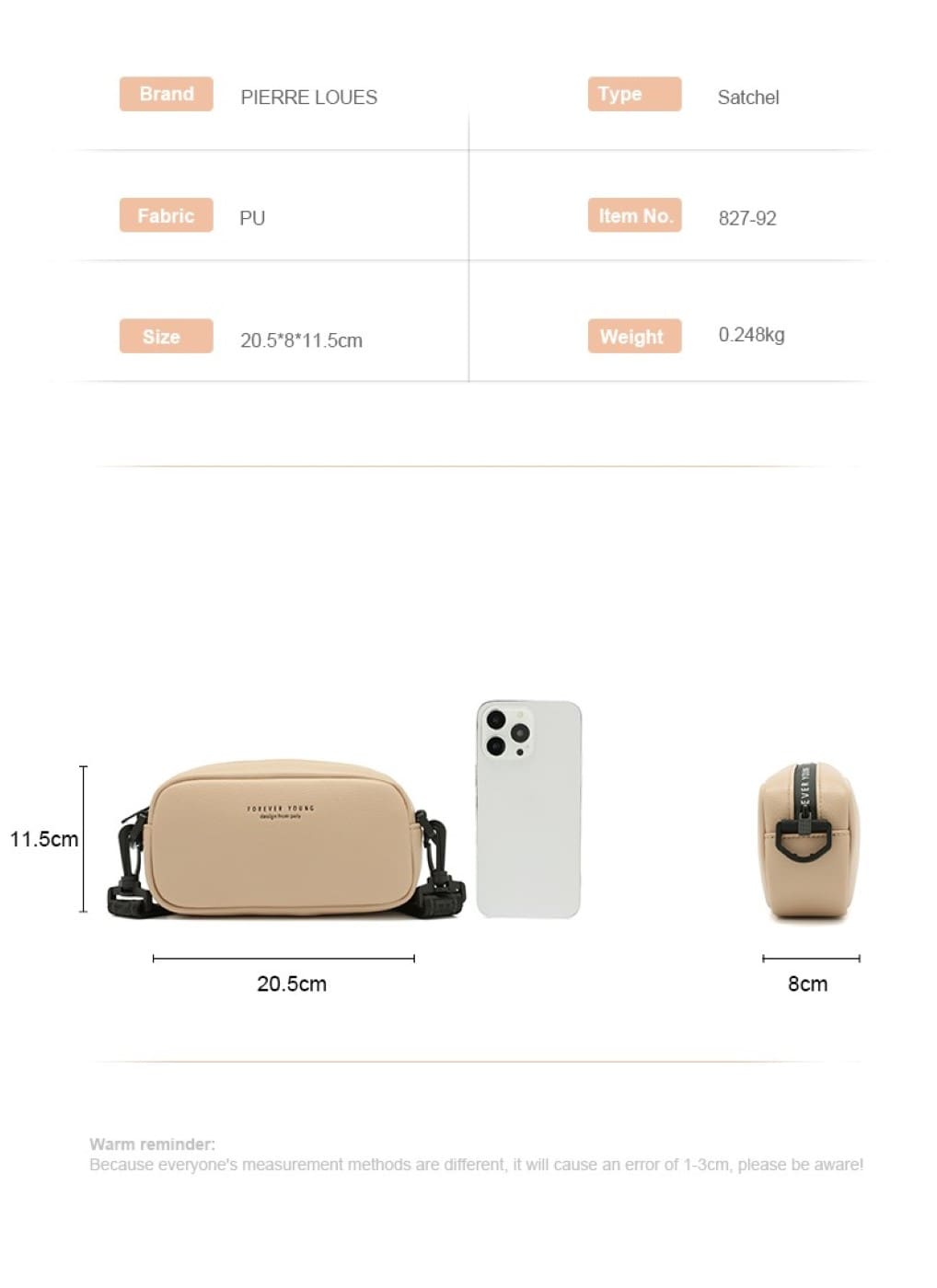 – Δομή: Η γυναικεία τσάντα χιαστί Pierre Loues για γυναίκες διαθέτει 1 κύρια θήκη με φερμουάρ,1 εσωτερική τσέπη , για να καλύψει τις καθημερινές σας ανάγκες δραστηριότητας.