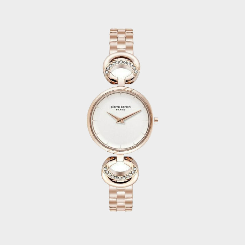 Γυναικείο ρολόι Pierre Cardin με επίχρυσο ανοξείδωτο ατσάλι & μπρασελέ και άσπρο αναλογικό καντράν.