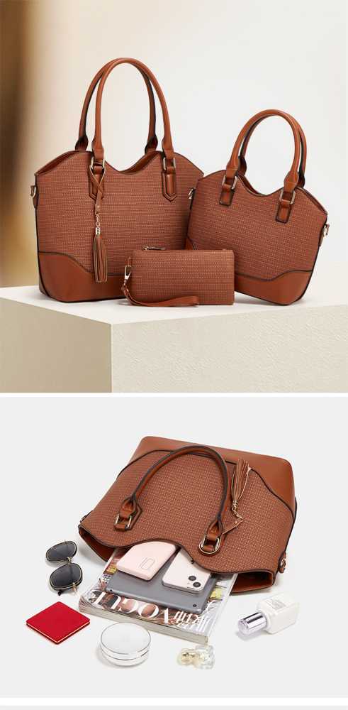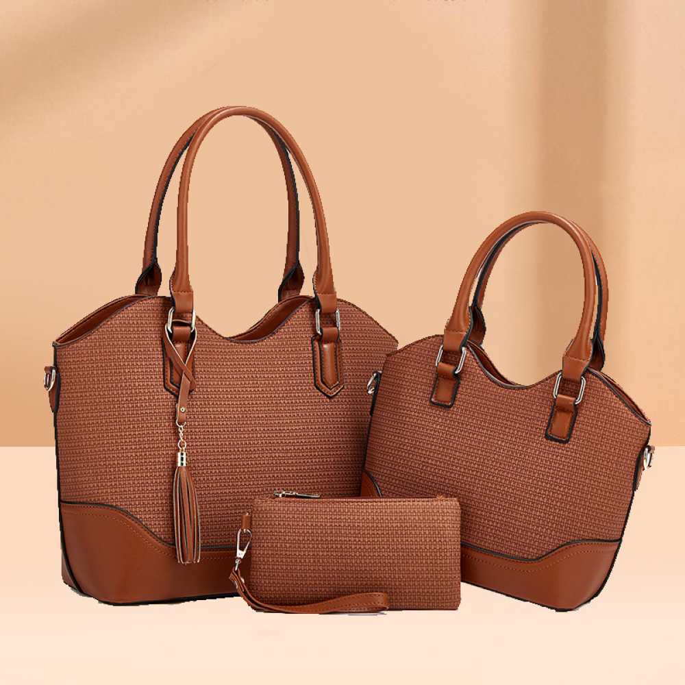 !!ΠΡΟΣΟΧΗ!!(Το χρώμα κάθε προϊόντος είναι αυτό που απεικονίζεται στην φωτογραφία προφίλ , οι υπόλοιπες φωτογραφίες που ακολουθούν είναι για να αντιληφθεί ο πελάτης τις λεπτομέρειες του προϊόντος) Κομψό γυναικείο σετ τσαντών 3 τεμαχίων σε κόκκινο χρώμα. Περιλαμβάνει μεγάλη τσάντα ώμου, μεσαία τσάντα χειρός με λουράκι και πρακτικό πορτοφόλι-φάκελο. Ιδανικό για καθημερινή χρήση και κομψές εμφανίσεις.