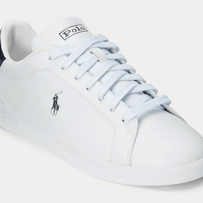 Sneaker Polo Ralph Lauren με άνω μέρος από γνήσιο δέρμα σε άσπρο χρώμα με μπλε λεπτομέρειες. Διαθέτει άνετο εσωτερικό πάτο και εξωτερική σόλα από καουτσούκ για βέλτιστη πρόσφυση. Ένα παπούτσι που θα σας προσφέρει άνεση και στιλ στην καθημερινότητά σας.