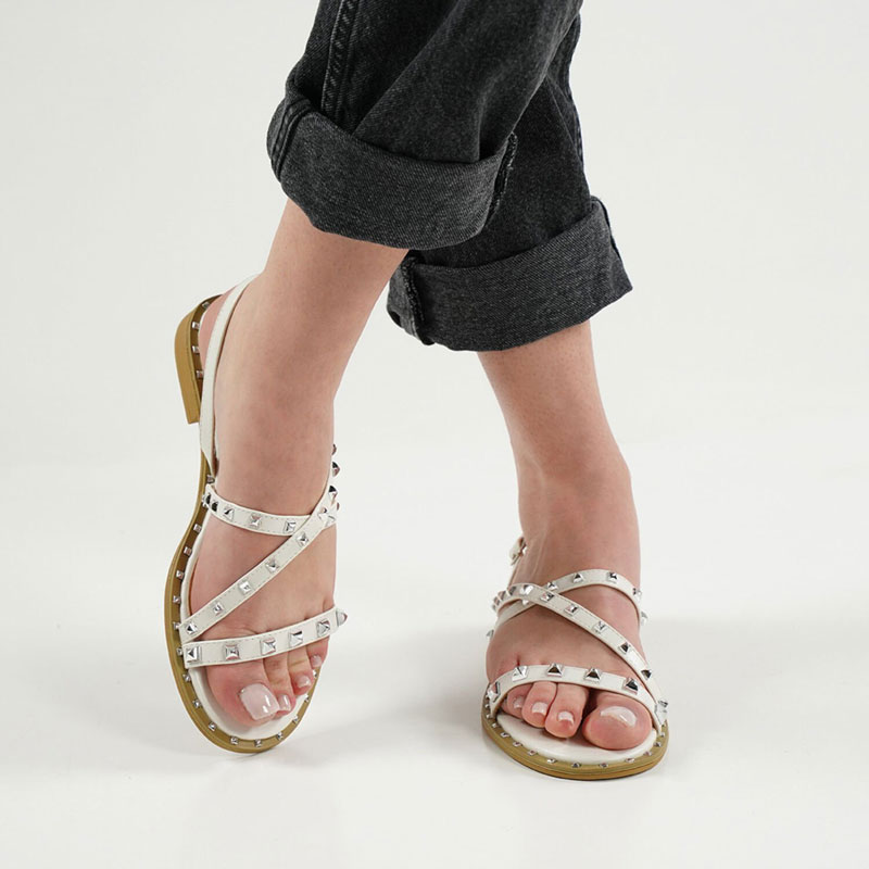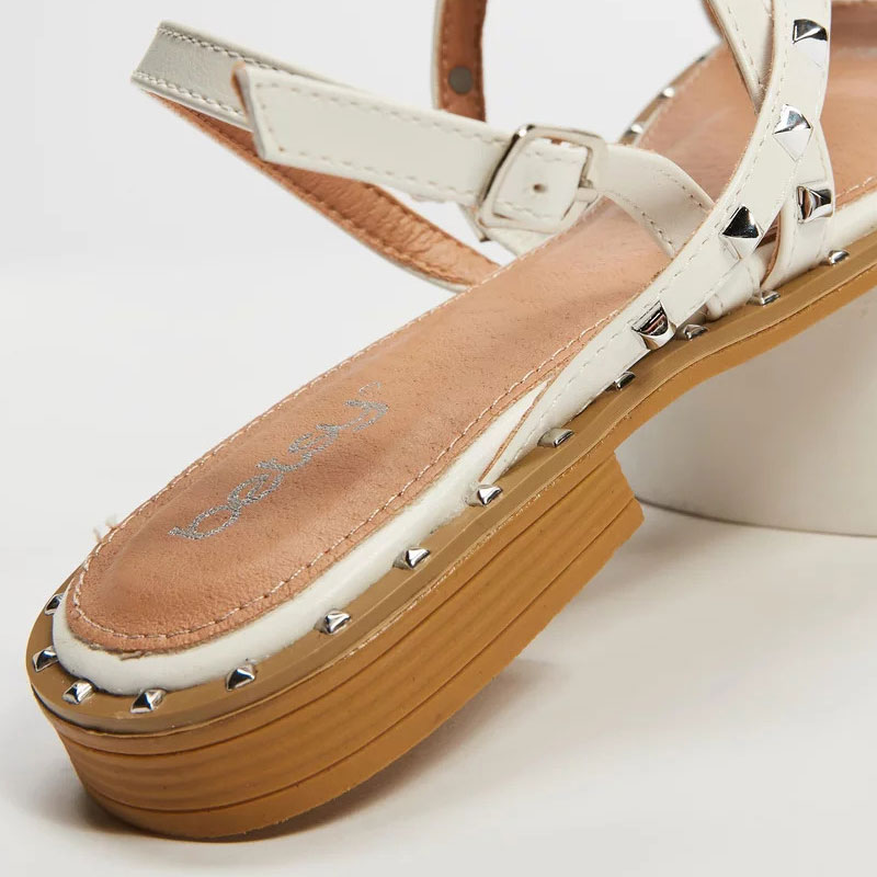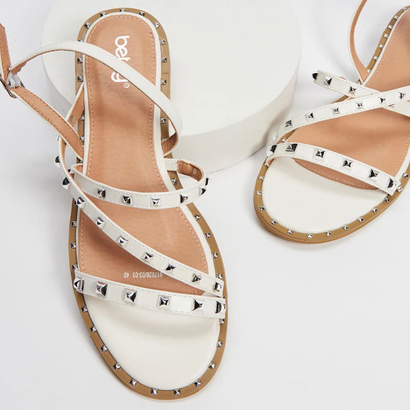 Ίσιο άσπρο πέδιλο από την Βρετανική εταιρεία Betsy. Διαθέτει λεπτά λουράκια με ασημένια τρουκς, ενδιάμεση σόλα με επένδυση και ρυθμιζόμενο ιμάντα αστραγάλου. Ένα all-day σανδάλι που θα ταιριάξει με όλα σου τα look και θα ενθουσιάσει.