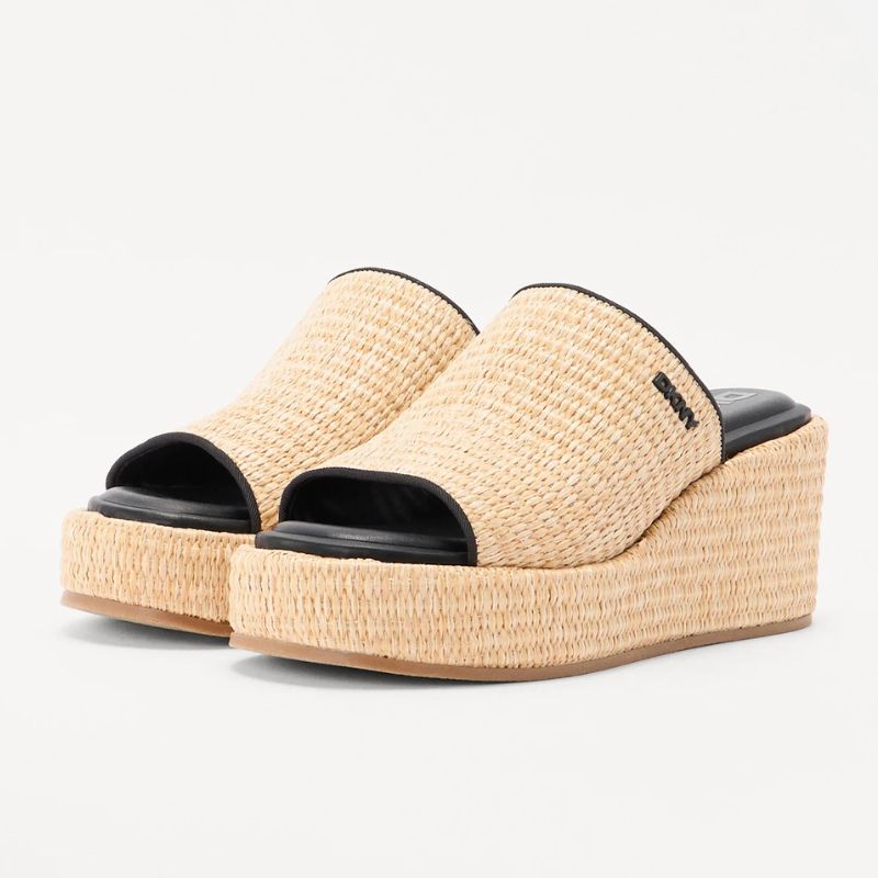 Αναβάθμισε το καλοκαιρινό σου στυλ με τα DKNY Conrad Wedge Sandals σε φυσικό και μαύρο χρώμα. Αυτά τα γυναικεία σανδάλια πλατφόρμας DKNY συνδυάζουν κομψότητα και άνεση, ιδανικά για καθημερινή χρήση ή καλοκαιρινές εξόδους. Με αναπαυτική σόλα και προσφέρουν σταθερότητα και στυλ σε κάθε σου βήμα.