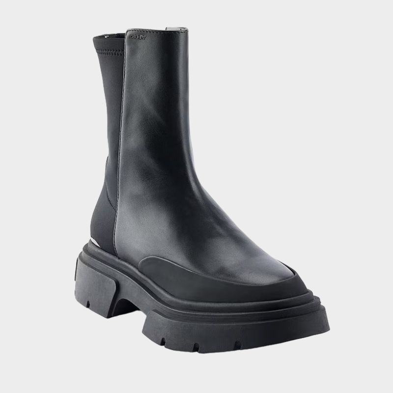 Το DKNY Fleming Leather Moto Bootie είναι ένα κομψό μποτάκι από μαύρο δέρμα και σόλα από καουτσούκ για άνετο περπάτημα. Με μοντέρνα, μοτοσυκλετιστική αισθητική, είναι ιδανικό για μια στιλάτη, αστική εμφάνιση.