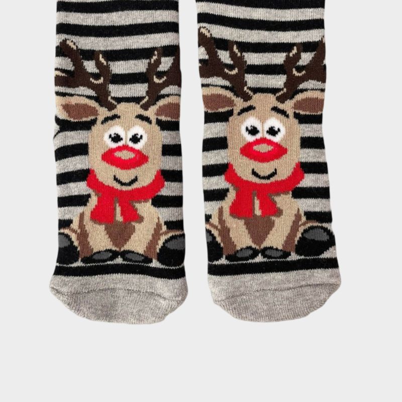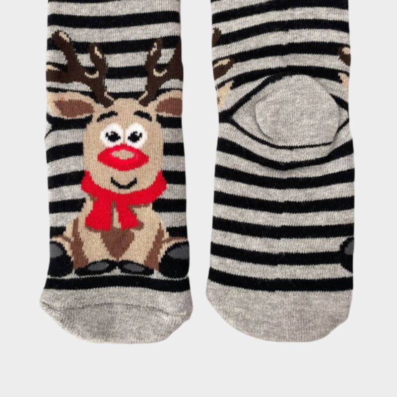 Οι γυναικείες μακρές χριστουγεννιάτικες κάλτσες σε γκρι χρώμα προσφέρουν μία όμορφη και γιορτινή αίσθηση.