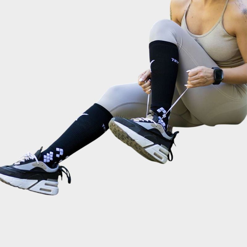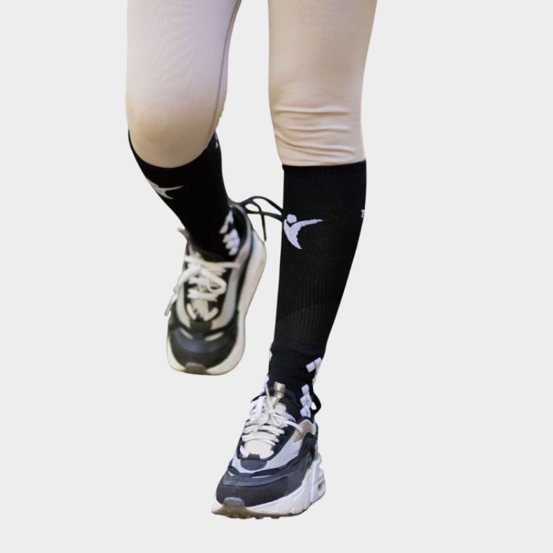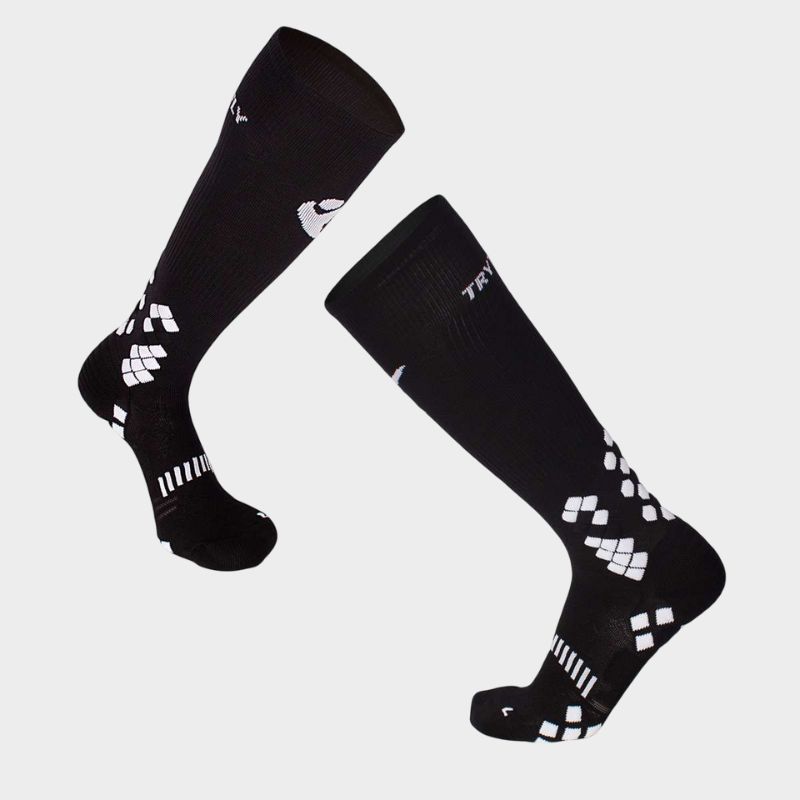 Οι κάλτσες μέχρι το γόνατο Try to Fly 3/4 Compression Socks είναι αναντικατάστατο κομμάτι του εξοπλισμού ενός αθλητή. Είναι κατάλληλες για μαραθώνιους, ποδηλασία και άλλα αθλήματα και σκληρές προπονήσεις. Το υψηλό επίπεδο συμπίεσης εξασφαλίζει την καλύτερη εφαρμογή της κάλτσας στα πόδια, την αποτρέπει από το να γλιστρήσει προς τα κάτω, βοηθά την κυκλοφορία του αίματος και σας κάνει να αισθάνεστε λιγότερο κουρασμένοι.