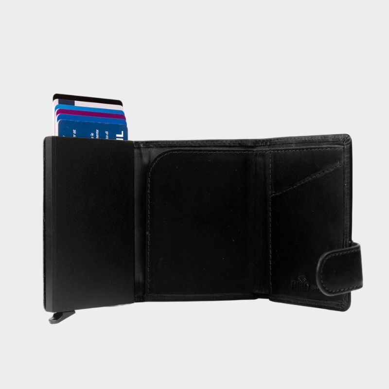 Ο πυρήνας είναι κατασκευασμένος από συμπαγές αλουμίνιο και είναι εξοπλισμένος με την τελευταία προστασία RFID. Όταν τραβάτε το μικρό μοχλό στο κάτω μέρος της θήκης της κάρτας προς το μέρος σας, οι κάρτες θα βγαίνουν από τη θήκη. Με αυτόν τον τρόπο έχετε αμέσως μια σαφή επισκόπηση των καρτών σας και δεν χρειάζεται να αναζητήσετε τη σωστή κάρτα.