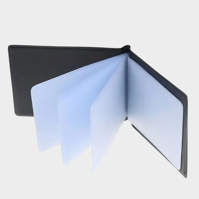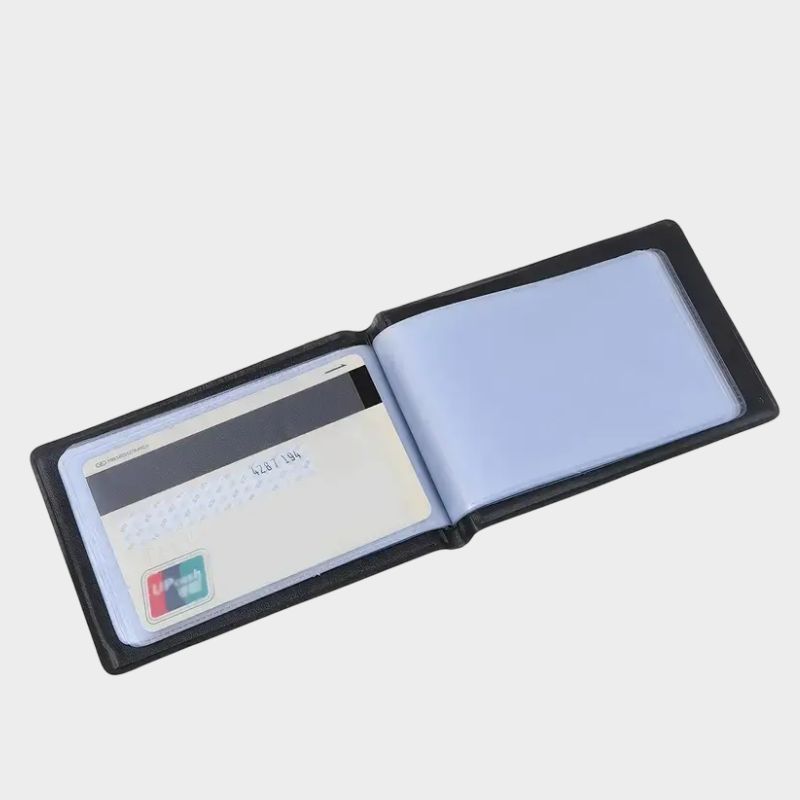 Υλικό: Συνθετικό δέρμα Διαστάσεις: 7.4cm x 10.4cm Διάφανες θήκες για κάρτες