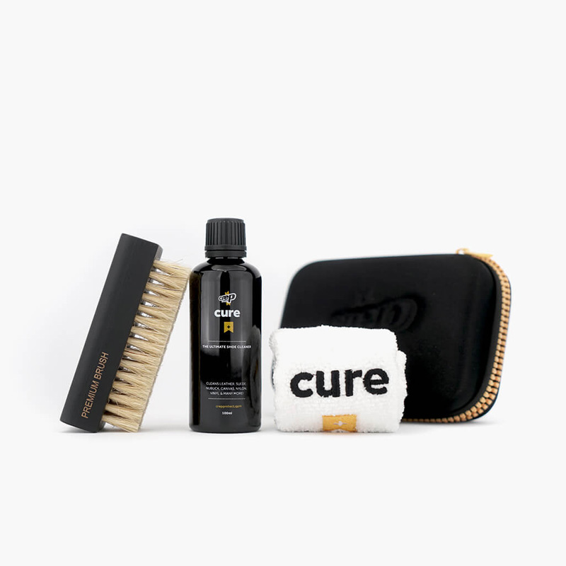 Το Crep Protect Cleaning Kit είναι το απόλυτο κιτ σε ό,τι αφορά των καθαρισμό παπουτσιών. Είναι σχεδιασμένο να καθαρίζει σε βάθος χωρίς να επηρεάζει την εμφάνιση, την αίσθηση και το σχήμα του παπουτσιού σας με οποιονδήποτε τρόπο. Η Crep Protect καινοτομώντας τα τελευταία χρόνια στον καθαρισμό υποδημάτων δημιούργησε την δική της λύση καθαρισμού από 98% φυσικά συστατικά(συμπεριλαμβανομένων εκχυλισμάτων καρύδας, νερού και jojoba) καθώς και τη δική της βούρτσα με πάνω από 1700 μαλακές τρίχες καθαρισμού που είναι κατάλληλη για όλα τα υλικά παπουτσιών.