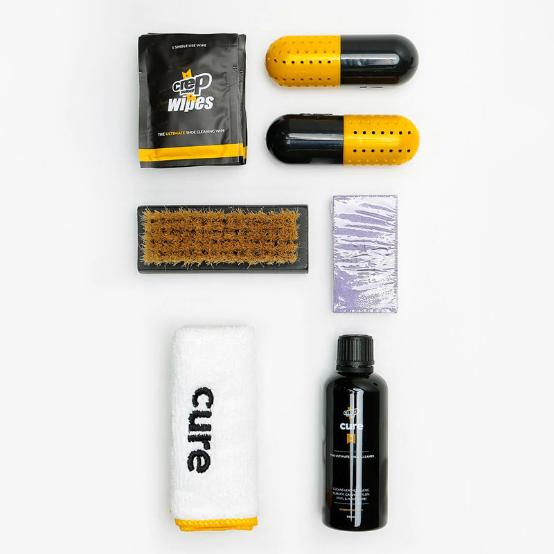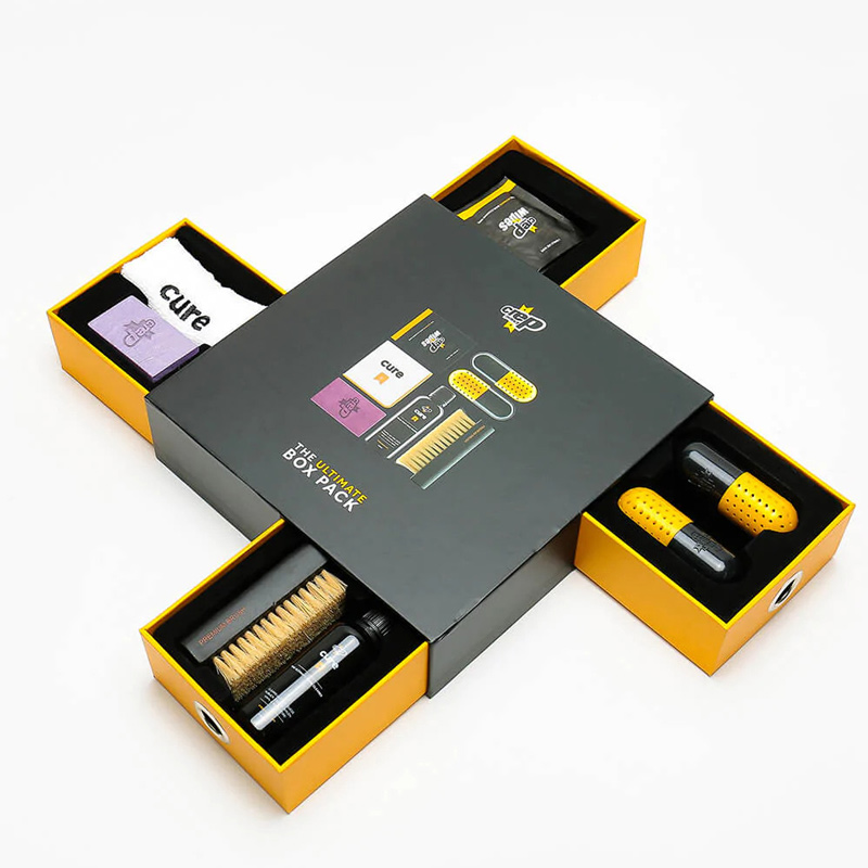 Η εταιρεία Crep Protect έχει καινοτομήσει τα τελευταία χρόνια στον καθαρισμό υποδημάτων. Το καθαριστικό σετ παπουτσιών Crep Protect Ultimate Box Pack αποτελείται από όλα τα απαραίτητα προϊόντα για να διατηρήσετε τα αθλητικά σας παπούτσια σε άψογη κατάστασhη. Η συσκευασία περιέχει τα best seller προϊόντα καθαρισμού της Crep Protect, συμπεριλαμβανομένου ενός διαλύματος καθαρισμού, premium βούρτσα για αθλητικά παπούτσια, γόμα, έξι μαντηλάκια διπλής όψης και αποσμητική κάψουλα παπουτσιών. Ένα απαραίτητο kit που θα διατηρήσει τα αγαπημένα σας παπούτσια σε άψογη κατάσταση