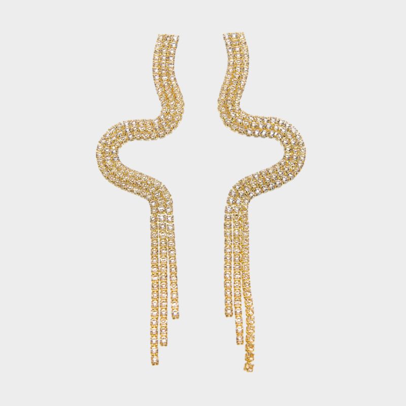 Αυτά τα εντυπωσιακά κρεμαστά σκουλαρίκια διαθέτουν λαμπερές πέτρες προσδίδοντας μια πινελιά πολυτέλειας σε κάθε εμφάνιση.Ένα κομψό και διαχρονικό αξεσουάρ, θα αναδείξει την θηλυκότητα και την κομψότητά σας. Κατασκευασμένα από επιχρυσωμένο ορείχαλκο που λάμπουν με κάθε κίνηση.Ιδανικά για: Βραδινές εξόδους και ειδικές περιστάσειςΑκολουθούν ορισμένες προτάσεις για το πώς να φορέσετε τα σκουλαρίκια:Φορέστε τα με ένα απλό μαύρο φόρεμα για μια κομψή και μινιμαλιστική εμφάνιση.Συνδυάστε τα με ένα εντυπωσιακό κολιέ για μια πιο επίσημη εμφάνιση.Επιπλέον:Τα σκουλαρίκια έρχονται σε ένα κομψό κουτί δώρου.