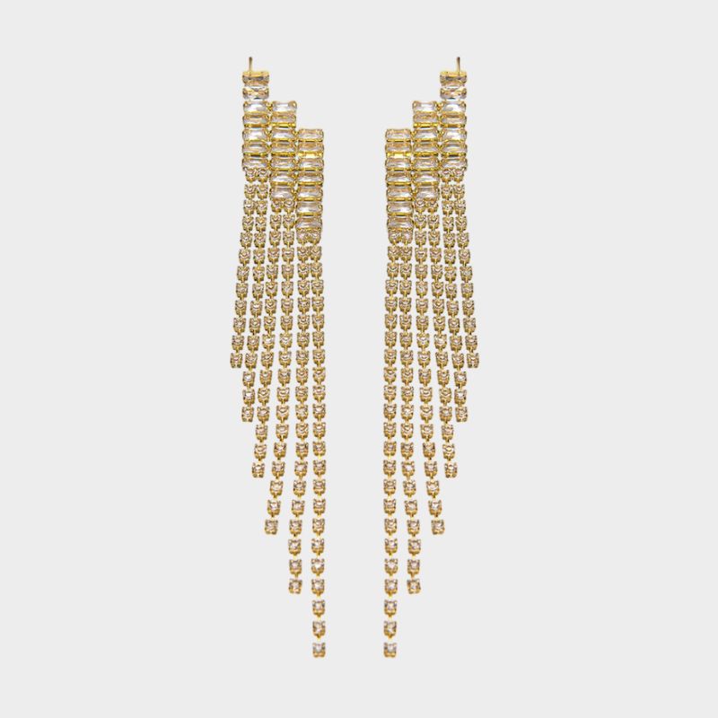 Αυτά τα εντυπωσιακά κρεμαστά σκουλαρίκια διαθέτουν λαμπερές πέτρες προσδίδοντας μια πινελιά πολυτέλειας σε κάθε εμφάνιση.Ένα κομψό και διαχρονικό αξεσουάρ, θα αναδείξει την θηλυκότητα και την κομψότητά σας. Κατασκευασμένα από επιχρυσωμένο ορείχαλκο που λάμπουν με κάθε κίνηση.Ιδανικά για: Βραδινές εξόδους και ειδικές περιστάσειςΑκολουθούν ορισμένες προτάσεις για το πώς να φορέσετε τα σκουλαρίκια:Φορέστε τα με ένα απλό μαύρο φόρεμα για μια κομψή και μινιμαλιστική εμφάνιση.Συνδυάστε τα με ένα εντυπωσιακό κολιέ για μια πιο επίσημη εμφάνιση.Επιπλέον:Τα σκουλαρίκια έρχονται σε ένα κομψό κουτί δώρου.