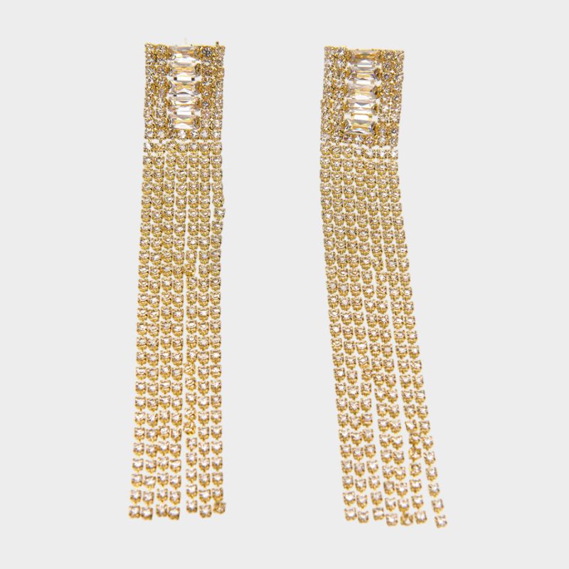 Αυτά τα εντυπωσιακά κρεμαστά σκουλαρίκια διαθέτουν λαμπερές πέτρες προσδίδοντας μια πινελιά πολυτέλειας σε κάθε εμφάνιση.Ένα κομψό και διαχρονικό αξεσουάρ, θα αναδείξει την θηλυκότητα και την κομψότητά σας. Κατασκευασμένα από επιχρυσωμένο ορείχαλκο που λάμπουν με κάθε κίνηση.Ιδανικά για: Βραδινές εξόδους και ειδικές περιστάσειςΑκολουθούν ορισμένες προτάσεις για το πώς να φορέσετε τα σκουλαρίκια:Φορέστε τα με ένα απλό μαύρο φόρεμα για μια κομψή και μινιμαλιστική εμφάνιση.Συνδυάστε τα με ένα εντυπωσιακό κολιέ για μια πιο επίσημη εμφάνιση.Επιπλέον:Τα σκουλαρίκια έρχονται σε ένα κομψό κουτί δώρου.