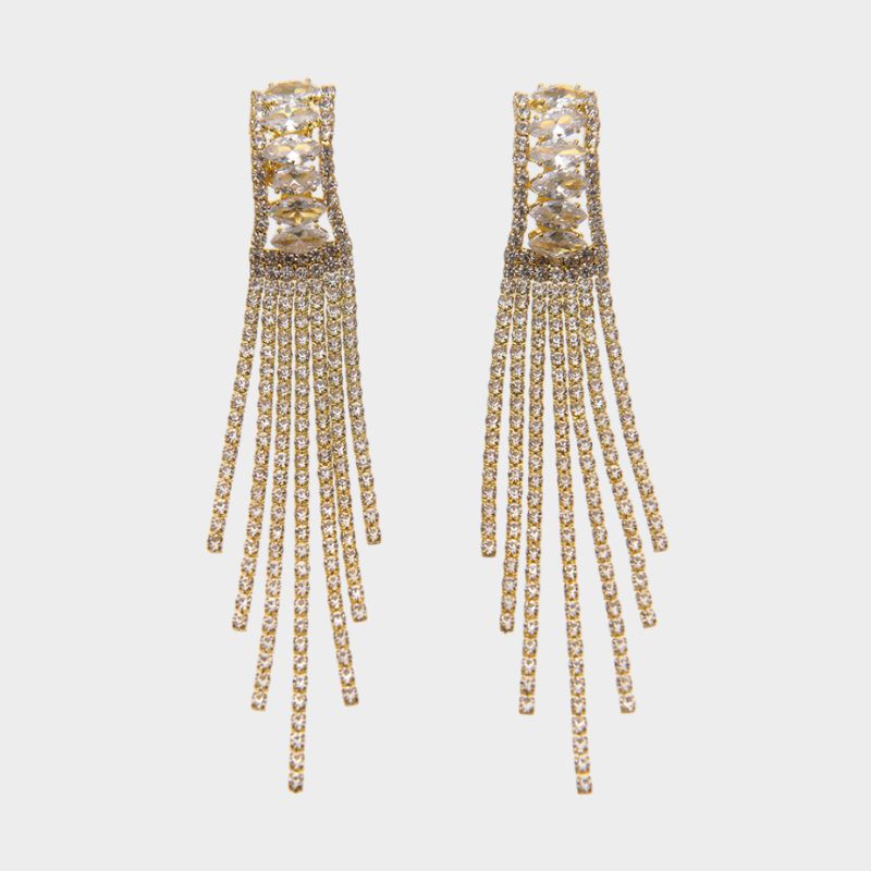 Αυτά τα εντυπωσιακά κρεμαστά σκουλαρίκια διαθέτουν λαμπερές πέτρες προσδίδοντας μια πινελιά πολυτέλειας σε κάθε εμφάνιση.Ένα κομψό και διαχρονικό αξεσουάρ, θα αναδείξει την θηλυκότητα και την κομψότητά σας. Κατασκευασμένα από επιχρυσωμένο ορείχαλκο που λάμπουν με κάθε κίνηση.Ιδανικά για: Βραδινές εξόδους και ειδικές περιστάσειςΑκολουθούν ορισμένες προτάσεις για το πώς να φορέσετε τα σκουλαρίκια:Φορέστε τα με ένα απλό μαύρο φόρεμα για μια κομψή και μινιμαλιστική εμφάνιση.Συνδυάστε τα με ένα εντυπωσιακό κολιέ για μια πιο επίσημη εμφάνιση.Επιπλέον:Τα σκουλαρίκια έρχονται σε ένα κομψό κουτί δώρου.