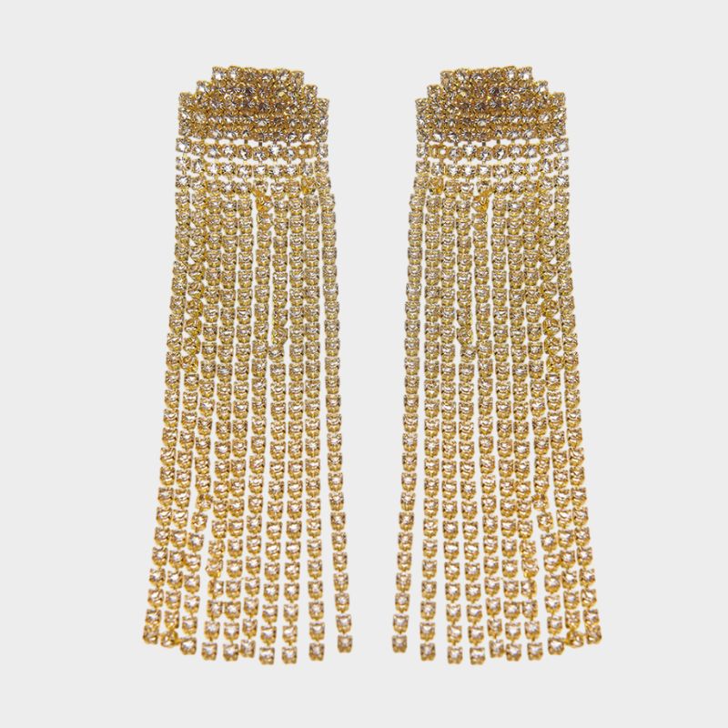 Αυτά τα εντυπωσιακά κρεμαστά σκουλαρίκια διαθέτουν λαμπερές πέτρες προσδίδοντας μια πινελιά πολυτέλειας σε κάθε εμφάνιση.Ένα κομψό και διαχρονικό αξεσουάρ, θα αναδείξει την θηλυκότητα και την κομψότητά σας. Κατασκευασμένα από επιχρυσωμένο ορείχαλκο που λάμπουν με κάθε κίνηση.Ιδανικά για: Βραδινές εξόδους και ειδικές περιστάσειςΑκολουθούν ορισμένες προτάσεις για το πώς να φορέσετε τα σκουλαρίκια:Φορέστε τα με ένα απλό μαύρο φόρεμα για μια κομψή και μινιμαλιστική εμφάνιση.Συνδυάστε τα με ένα εντυπωσιακό κολιέ για μια πιο επίσημη εμφάνιση.Επιπλέον:Τα σκουλαρίκια έρχονται σε ένα κομψό κουτί δώρου.