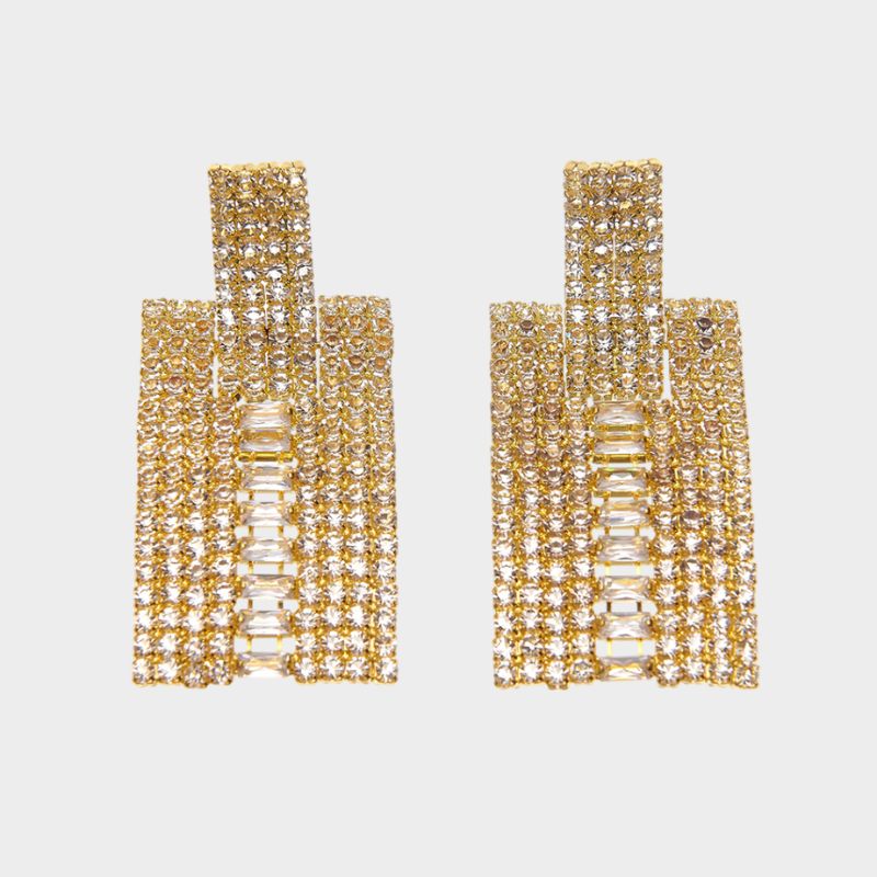 Αυτά τα εντυπωσιακά κρεμαστά σκουλαρίκια διαθέτουν λαμπερές πέτρες προσδίδοντας μια πινελιά πολυτέλειας σε κάθε εμφάνιση.Ένα κομψό και διαχρονικό αξεσουάρ, θα αναδείξει την θηλυκότητα και την κομψότητά σας. Κατασκευασμένα από επιχρυσωμένο ορείχαλκο που λάμπουν με κάθε κίνηση.Ιδανικά για: Βραδινές εξόδους και ειδικές περιστάσειςΑκολουθούν ορισμένες προτάσεις για το πώς να φορέσετε τα σκουλαρίκια:Φορέστε τα με ένα απλό μαύρο φόρεμα για μια κομψή και μινιμαλιστική εμφάνιση.Συνδυάστε τα με ένα εντυπωσιακό κολιέ για μια πιο επίσημη εμφάνιση.Επιπλέον:Τα σκουλαρίκια έρχονται σε ένα κομψό κουτί δώρου.