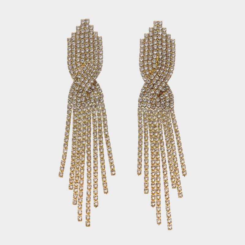 Αυτά τα εντυπωσιακά κρεμαστά σκουλαρίκια διαθέτουν λαμπερές πέτρες προσδίδοντας μια πινελιά πολυτέλειας σε κάθε εμφάνιση.Ένα κομψό και διαχρονικό αξεσουάρ, θα αναδείξει την θηλυκότητα και την κομψότητά σας. Κατασκευασμένα από επιχρυσωμένο ορείχαλκο που λάμπουν με κάθε κίνηση.Ιδανικά για: Βραδινές εξόδους και ειδικές περιστάσειςΑκολουθούν ορισμένες προτάσεις για το πώς να φορέσετε τα σκουλαρίκια:Φορέστε τα με ένα απλό μαύρο φόρεμα για μια κομψή και μινιμαλιστική εμφάνιση.Συνδυάστε τα με ένα εντυπωσιακό κολιέ για μια πιο επίσημη εμφάνιση.Επιπλέον:Τα σκουλαρίκια έρχονται σε ένα κομψό κουτί δώρου.