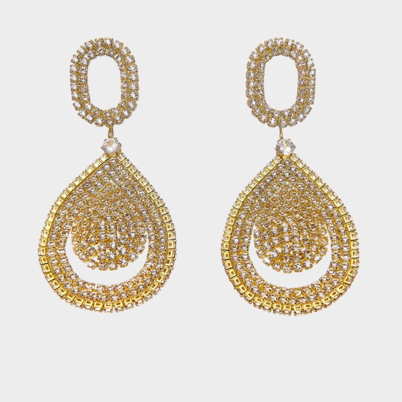 Αυτά τα εντυπωσιακά κρεμαστά σκουλαρίκια διαθέτουν λαμπερές πέτρες προσδίδοντας μια πινελιά πολυτέλειας σε κάθε εμφάνιση.Ένα κομψό και διαχρονικό αξεσουάρ, θα αναδείξει την θηλυκότητα και την κομψότητά σας. Κατασκευασμένα από επιχρυσωμένο ορείχαλκο που λάμπουν με κάθε κίνηση.Ιδανικά για: Βραδινές εξόδους και ειδικές περιστάσειςΑκολουθούν ορισμένες προτάσεις για το πώς να φορέσετε τα σκουλαρίκια:Φορέστε τα με ένα απλό μαύρο φόρεμα για μια κομψή και μινιμαλιστική εμφάνιση.Συνδυάστε τα με ένα εντυπωσιακό κολιέ για μια πιο επίσημη εμφάνιση.Επιπλέον:Τα σκουλαρίκια έρχονται σε ένα κομψό κουτί δώρου.