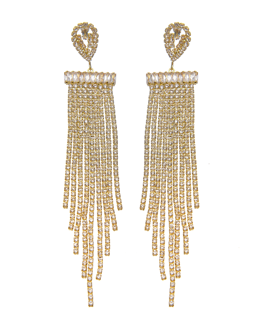 Αυτά τα εντυπωσιακά κρεμαστά σκουλαρίκια διαθέτουν λαμπερές πέτρες προσδίδοντας μια πινελιά πολυτέλειας σε κάθε εμφάνιση.Ένα κομψό και διαχρονικό αξεσουάρ, θα αναδείξει την θηλυκότητα και την κομψότητά σας. Κατασκευασμένα από επιχρυσωμένο ορείχαλκο που λάμπουν με κάθε κίνηση.Ιδανικά για: Βραδινές εξόδους και ειδικές περιστάσειςΑκολουθούν ορισμένες προτάσεις για το πώς να φορέσετε τα σκουλαρίκια:Φορέστε τα με ένα απλό μαύρο φόρεμα για μια κομψή και μινιμαλιστική εμφάνιση.Συνδυάστε τα με ένα εντυπωσιακό κολιέ για μια πιο επίσημη εμφάνιση.Επιπλέον:Τα σκουλαρίκια έρχονται σε ένα κομψό κουτί δώρου.