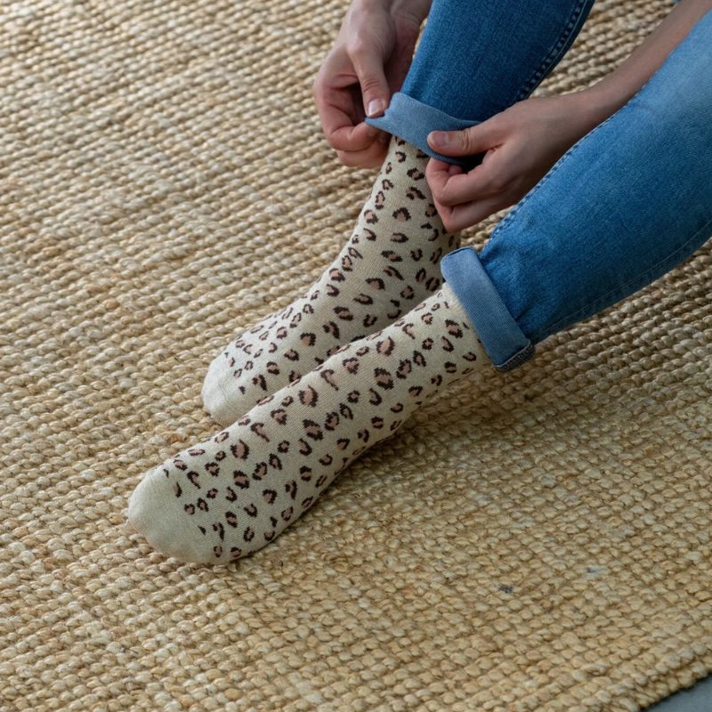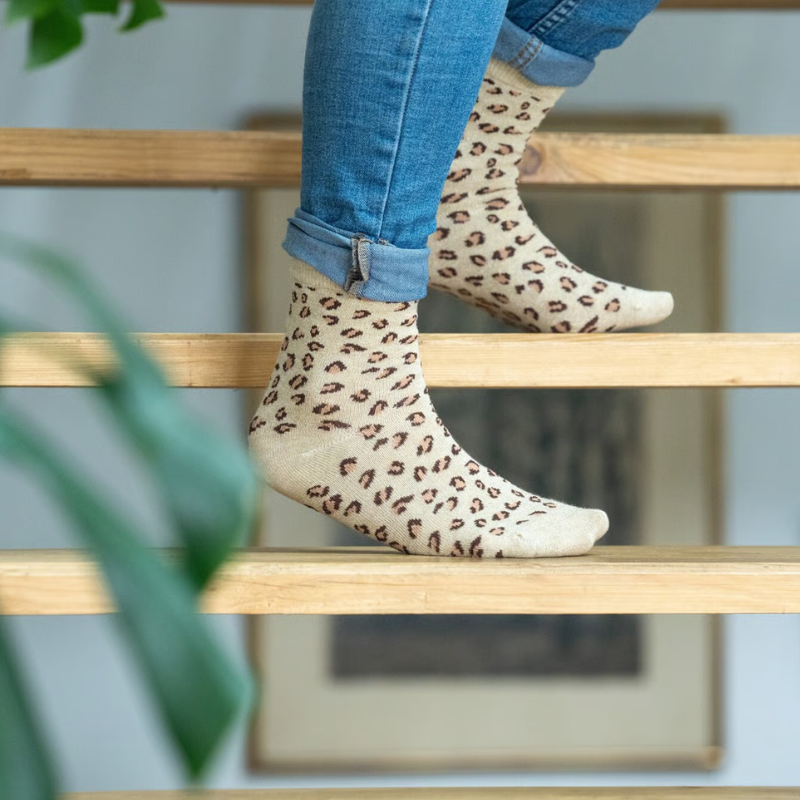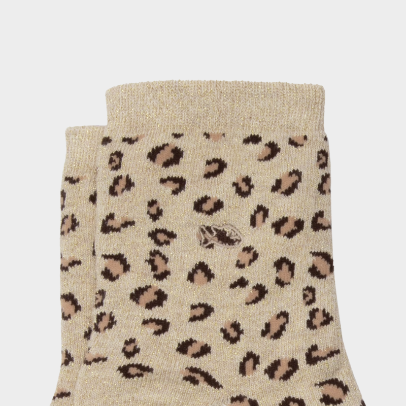 Προσθέστε μια πινελιά πρωτοτυπίας στο ντύσιμό σας με τις κάλτσες μας με glitter λεοπάρ print. Κατασκευασμένες από πενιέ βαμβάκι και χειροποίητες, αυτό το ζευγάρι κάλτσες εγγυάται άνεση και μακροχρόνια ανθεκτικότητα.