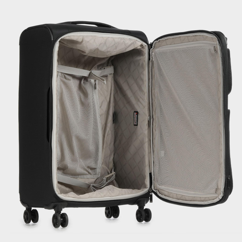 Διαθέτει Κλείσιμο με διπλά φερμουάρ Κλείδωμα ασφαλείας 4 τροχούς