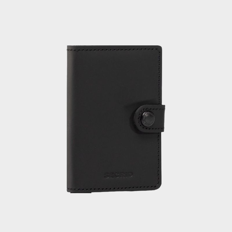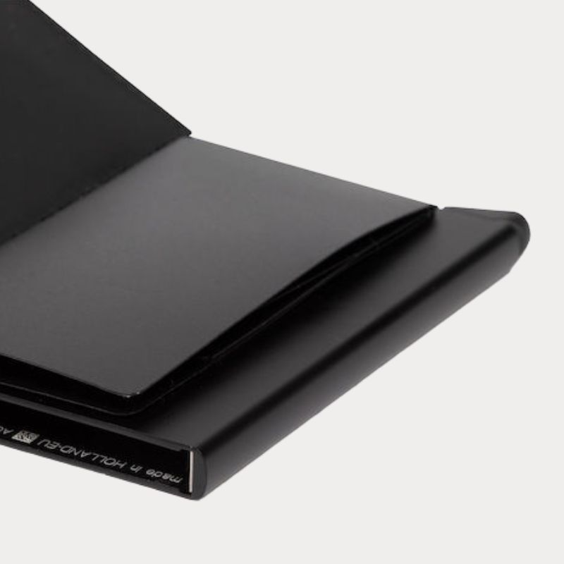 Δερμάτινη Καρτοθήκη πιστωτικών καρτών από την Secrid της σειράς Miniwallet. Η καρτοθήκη έχει προστασία RFID. Έχει πατενταρισμένο μηχανισμό που βγάζει τις κάρτες με μια πολύ απλή κίνηση για γρήγορη πρόσβαση. Το αλουμίνιο προστατεύει τις κάρτες από ανεπιθύμητες ανέπαφες συναλλαγές.