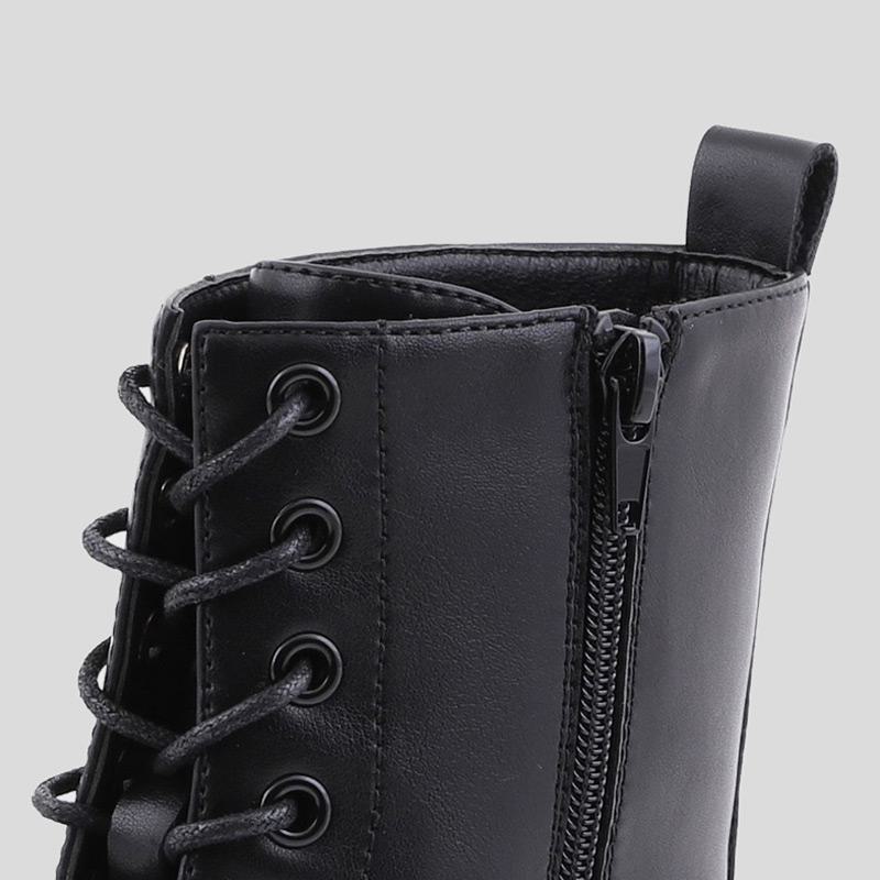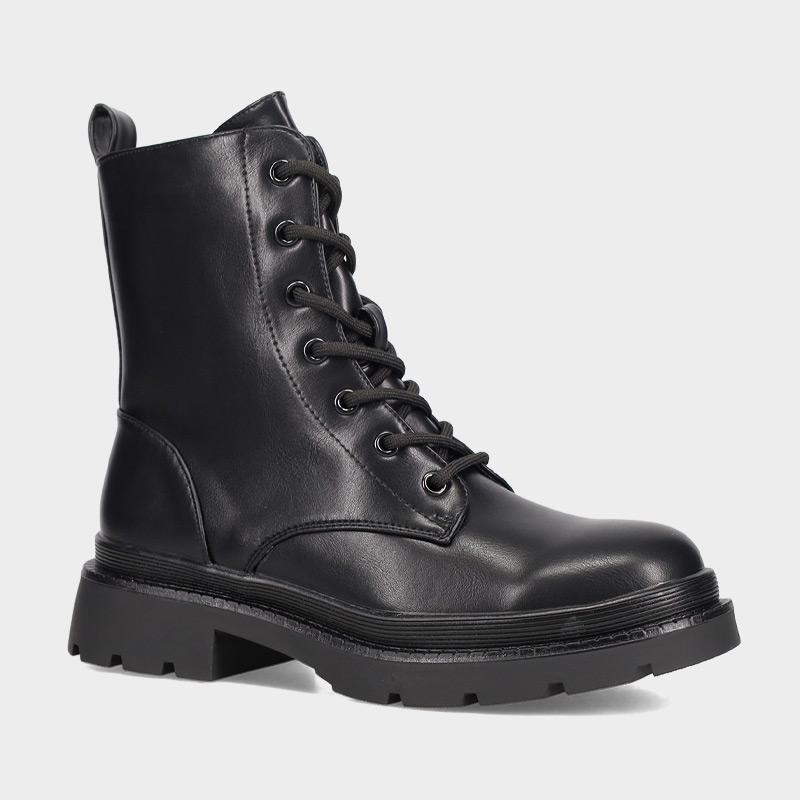 Αρβυλάκι με άνω μέρος από οικολογικό δέρμα το οποίο εφαρμόζει με φερμουάρ και κορδόνια. Μία κομψή επιλογή για κάθε μέρα.