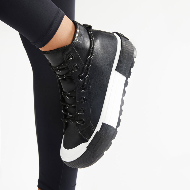 Τα παπούτσια μας είναι κατασκευασμένα από μαλακό ύφασμα που παρέχει άνεση και ζεστασιά, ακόμα και σε κρύες μέρες. Το ασπρόμαυρο χρώμα τους είναι διαχρονικό και μπορεί να φορεθεί με οτιδήποτε. Τα κορδόνια πολλαπλών θέσεων σας επιτρέπουν να τα φορέσετε με τον τρόπο που σας αρέσει, ενώ η σόλα 5 εκατοστών είναι ανθεκτική και διαθέτει το έμβλημά μας για να προσθέσει μια πινελιά στυλ.