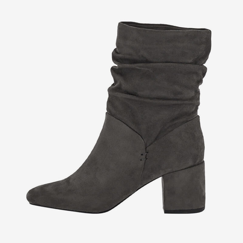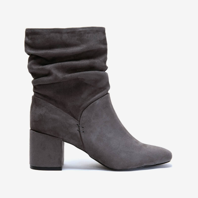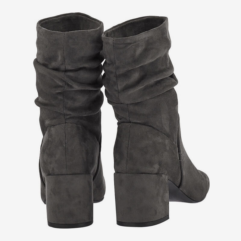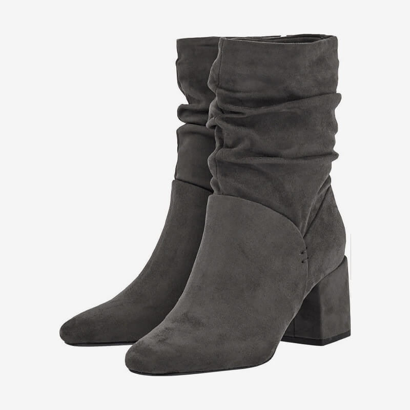 Μποτάκι με σούρα της Exe από suede σε γκρι χρώμα. Μία άνετη μπότα για κάθε μέρα.