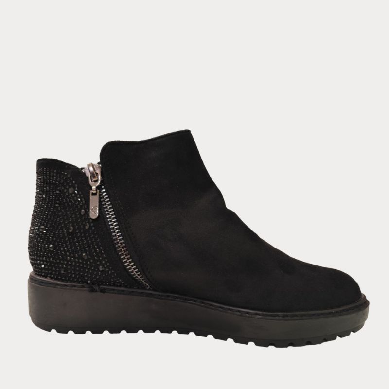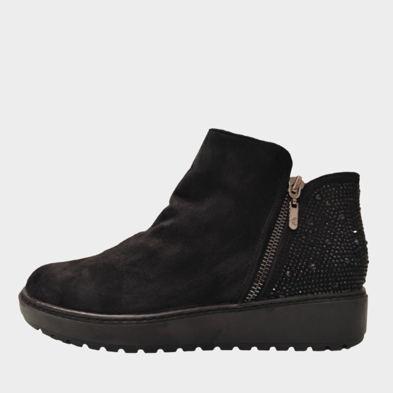 Μποτάκι Exe με μαύρο στρας και φερμουάρ και εύκολη εφαρμογή, για άνεση και στυλ κάθε μέρα.