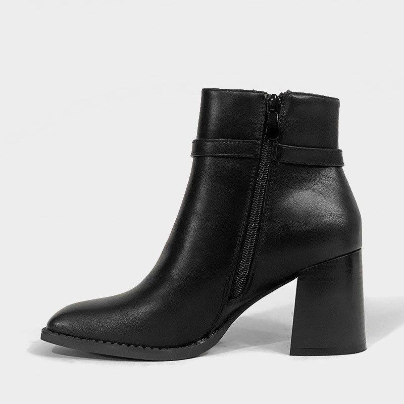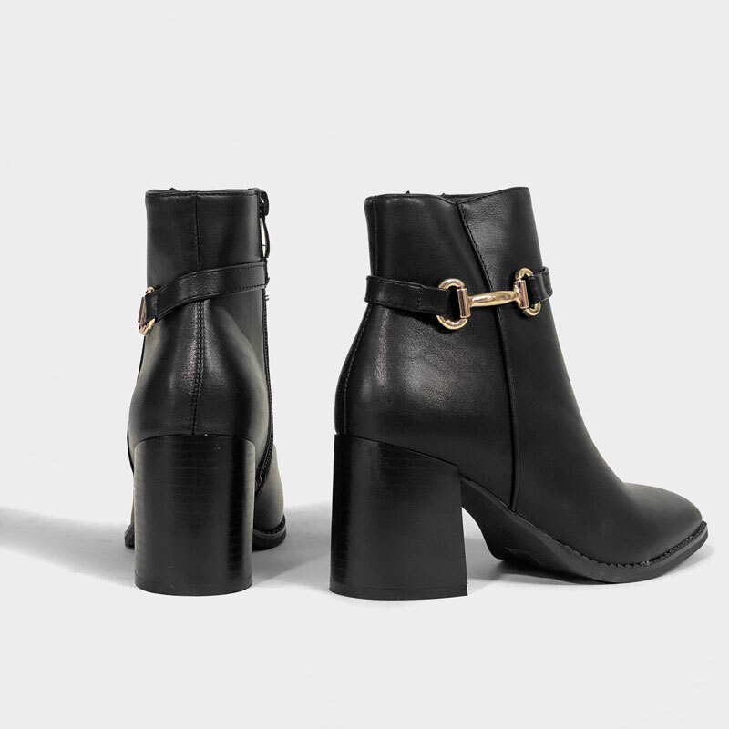 Μποτάκι με χοντρό τακούνι και άνω μέρος από οικολογικό δέρμα σε μαύρο χρώμα. Διαθέτει άνετο εσωτερικό πάτο και κλείνει με φερμουάρ για πιο γρήγορη εφαρμογή. Μία επιλογή που θα σας προσφέρει άνεση και στυλ στις εξόδους σας.