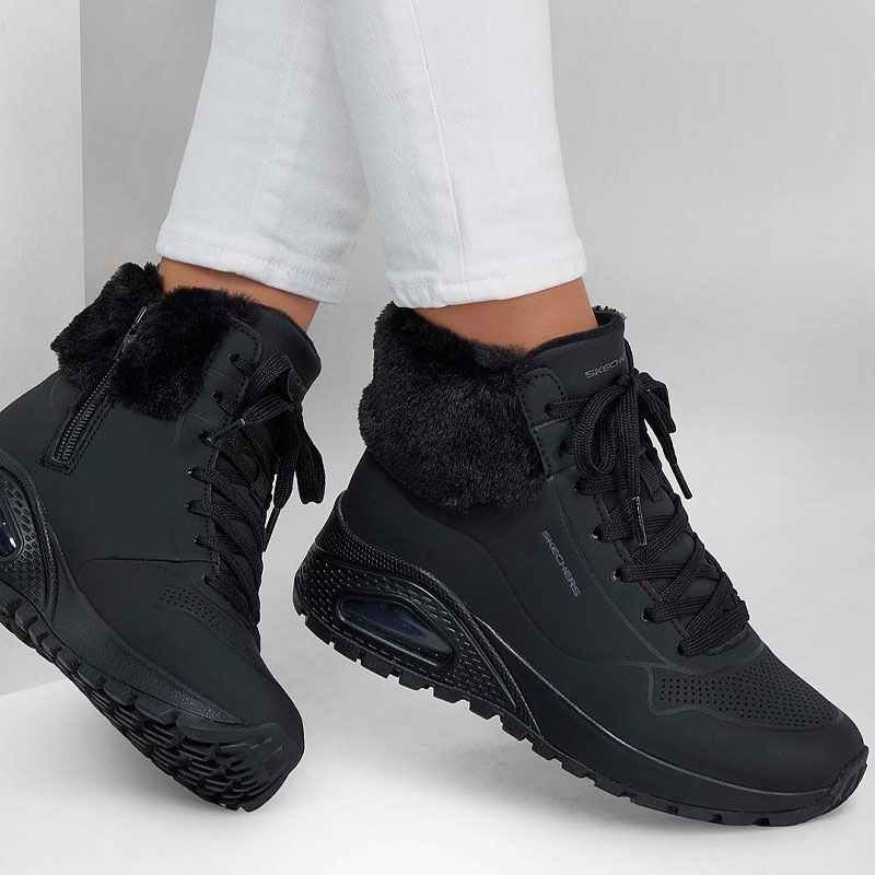 Μποτάκι της Skecher με άνω μέρος από διαπνέον, οικολογικό υλικό υψηλής ποιότητας σε μαύρο χρώμα. Διαθέτει μαλακή εσωτερική σόλα Memory Foam® και ενδιάμεση σόλα με αέρα Skech-Air®. Επιπλέον η επένδυση από οικολογική γούνα διατηρεί το πόδι ζεστό και η εύκαμπτη εξωτερική σόλα από καουτσούκ προσφέρει καλύτερη πρόσφυση.