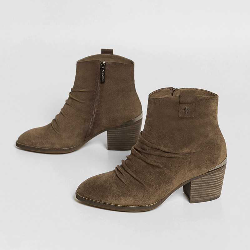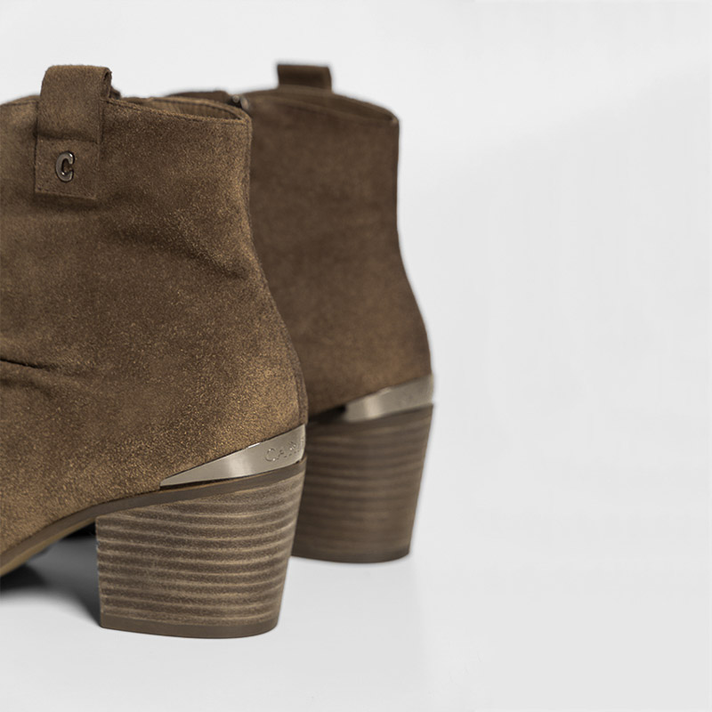 Γυναικεία μυτερά μποτάκια με τακούνι CARMELA 66831 από γνήσιο δέρμα.Τα μποτάκια έχουν μεταλλική λεπτομέρεια σε ασημί χρώμα στο τακούνι.Κλείνουν με φερμουάρ για εύκολη χρήση και τέλεια εφαρμογή. Η αντιολισθητική σόλα τους προσφέρουν στήριξη και σταθερό πάτημα όλη μέρα.Ένα εύκολο μποτάκι για κάθε μέρα!