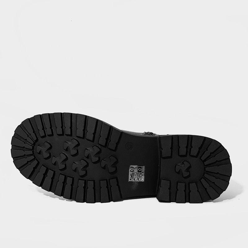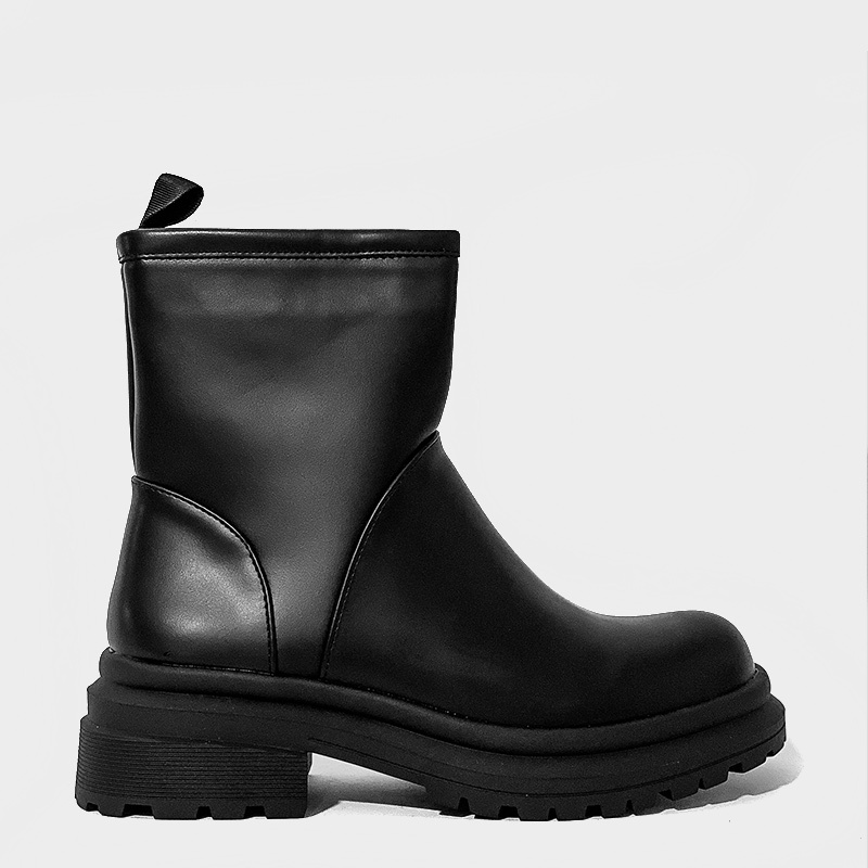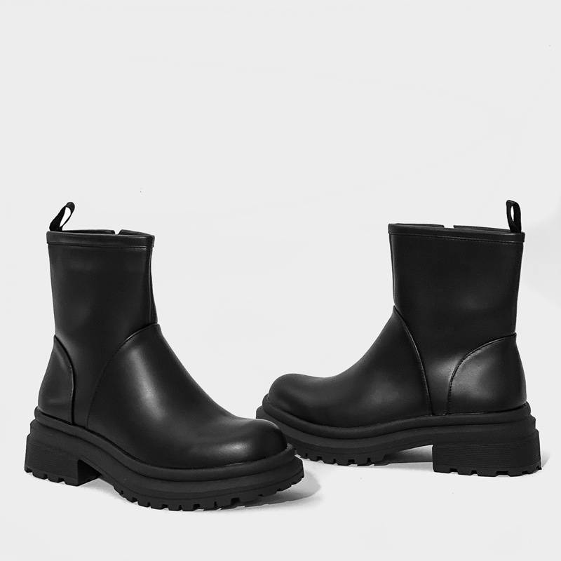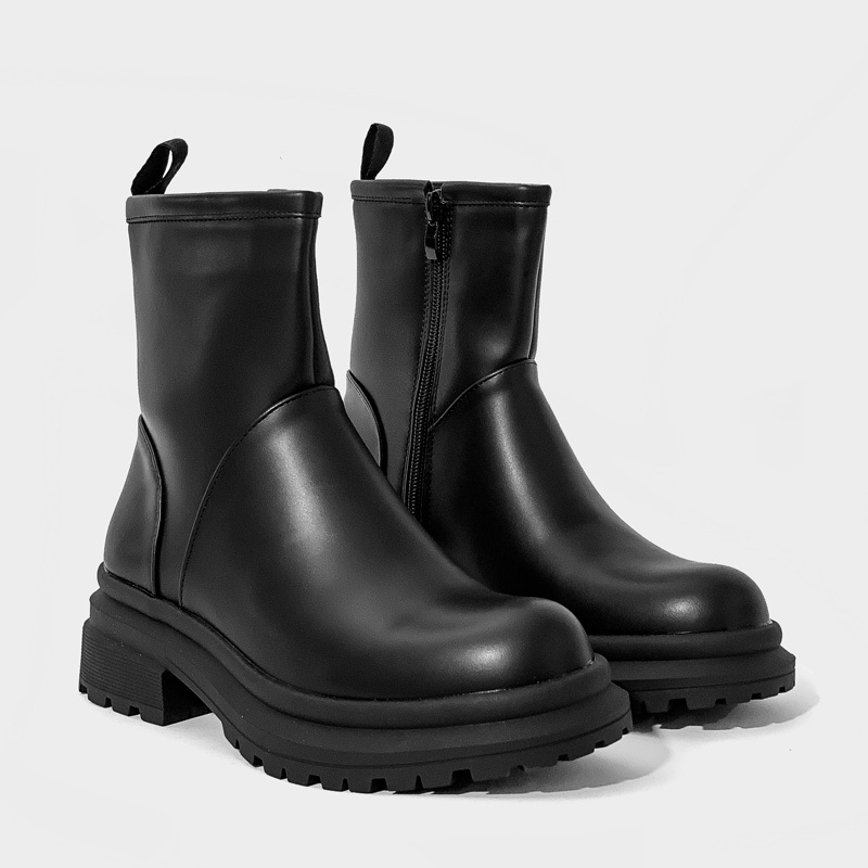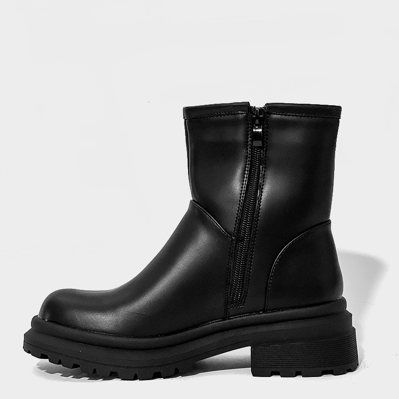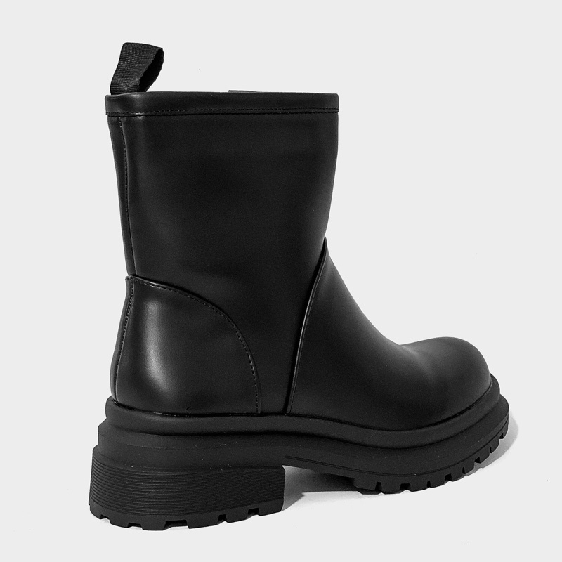 Μποτάκι με χοντρό τακούνι και τρακτερωτή σόλα, το άνω μέρος από οικολογικό δέρμα υψηλής ποιότητας σε μαύρο χρώμα. Διαθέτει άνετο εσωτερικό πάτο και κλείνει με φερμουάρ για πιο γρήγορη εφαρμογή. Μία επιλογή που θα σας προσφέρει άνεση και στυλ στις εξόδους σας.