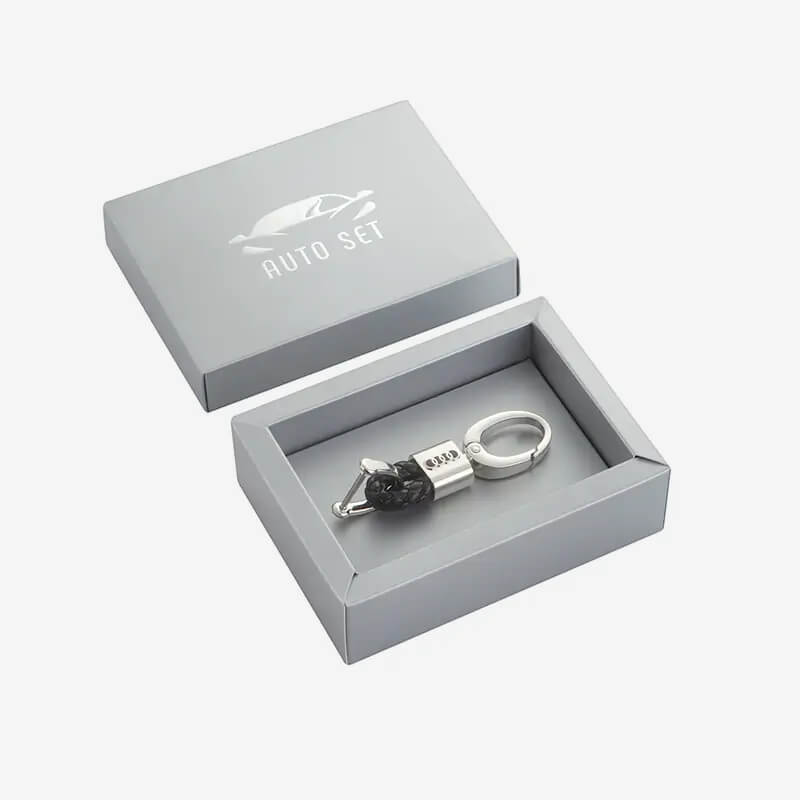 Μεταλλικό μπρελόκ της Auto Set με λουράκι από γνήσιο δέρμα και λογότυπο της Αudi.