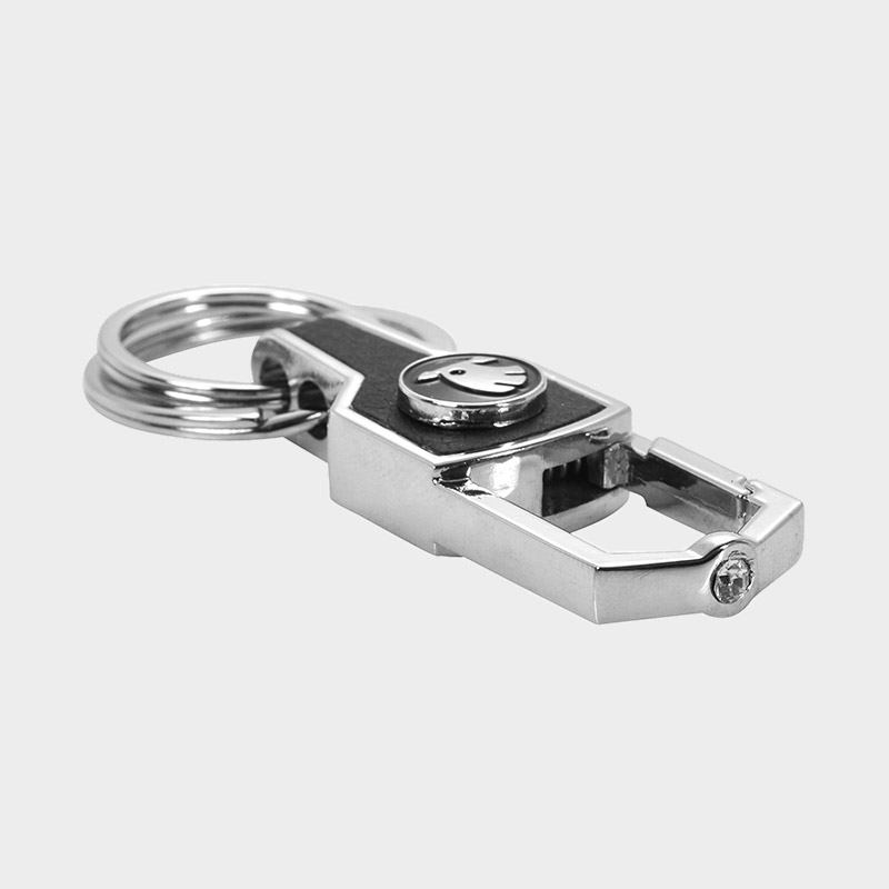 Μεταλλικό μπρελόκ της Auto Set με λουράκι από γνήσιο δέρμα και λογότυπο της Skoda.