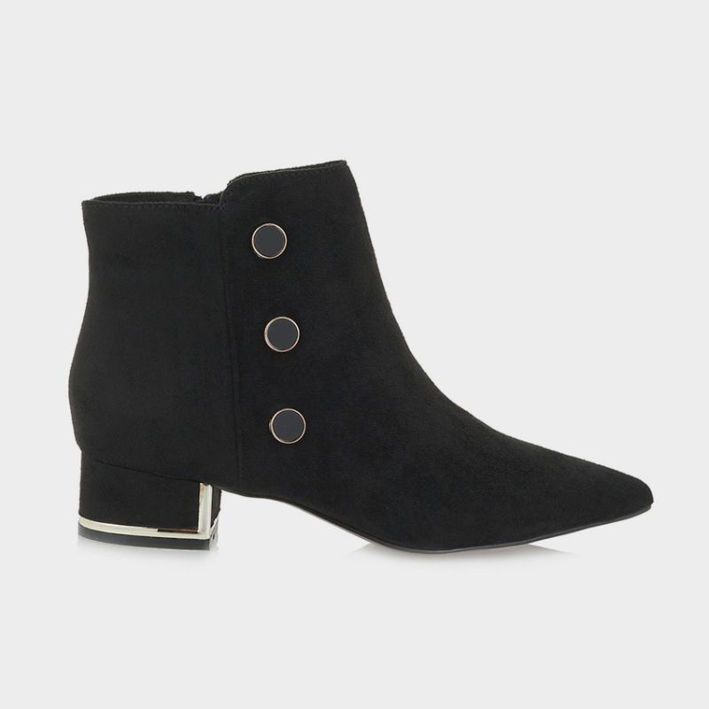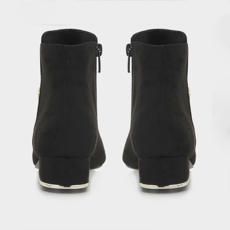 Μποτάκι Exe J37008202. Διαθέτει χαμηλό χοντρό τακούνι με χρυσές μεταλλικές λεπτομέρειες που το καθιστά άκρως εντυπωσιακό. Κλείνει με φερμουάρ για εύκολη χρήση και τέλεια εφαρμογή. Ένα εντυπωσιακό μποτάκι ιδανικό για κάθε γκαρναρόμπα.