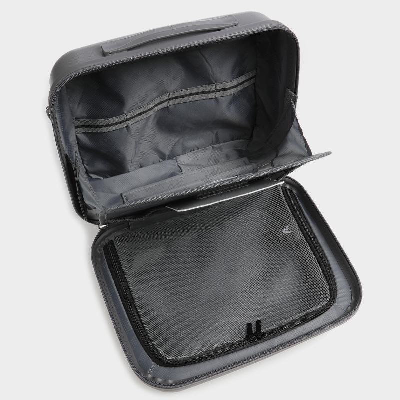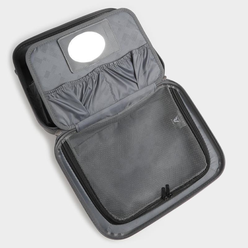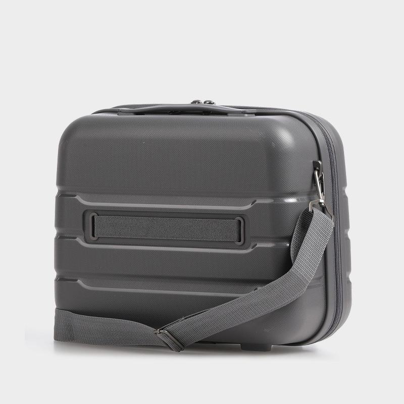 Στην εξωτερική πίσω πλευρά, υπάρχει μια υφασμάτινη λωρίδα για τη σύνδεση του νεσεσέρ με τη λαβή αποσκευών