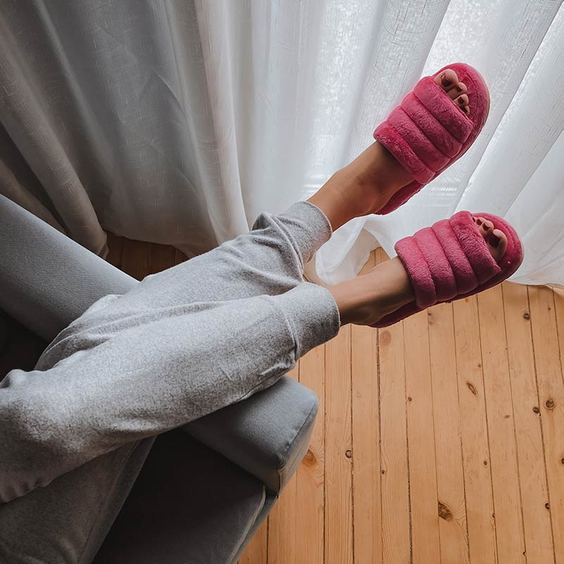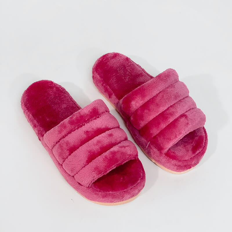 Γυναικεία παντόφλα από απαλή οικολογική γούνα και μαλακό πάτο. Μία πολύ ελαφριά παντόφλα για το σπίτι