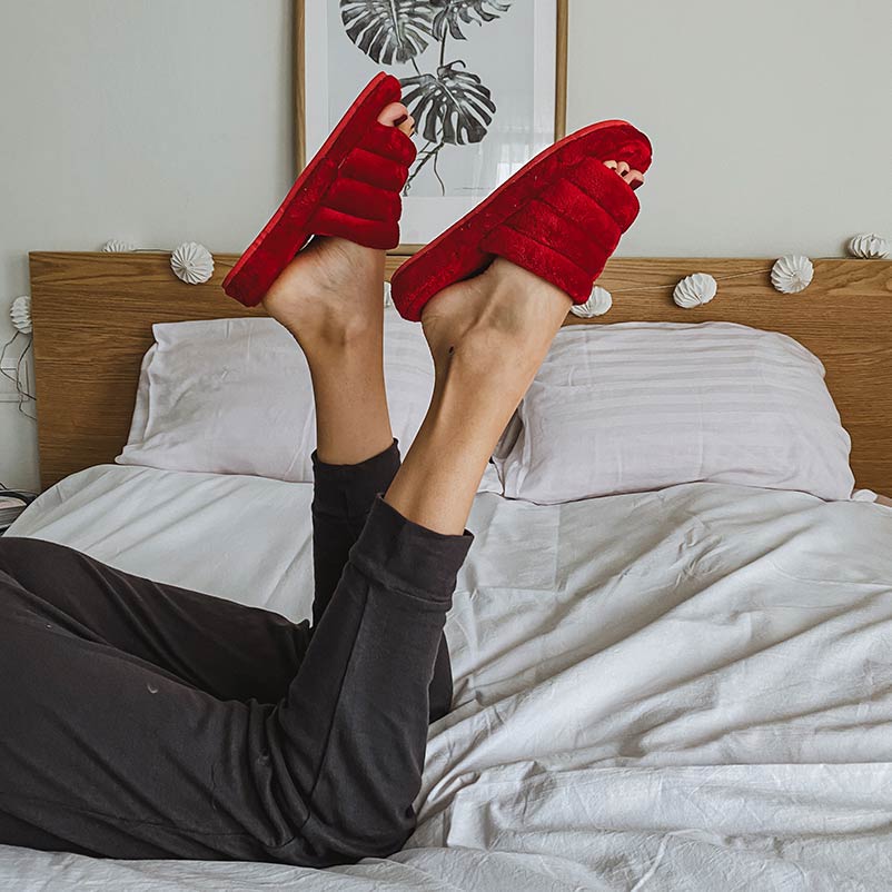 Γυναικεία παντόφλα από απαλή οικολογική γούνα και μαλακό πάτο. Μία πολύ ελαφριά παντόφλα για το σπίτι