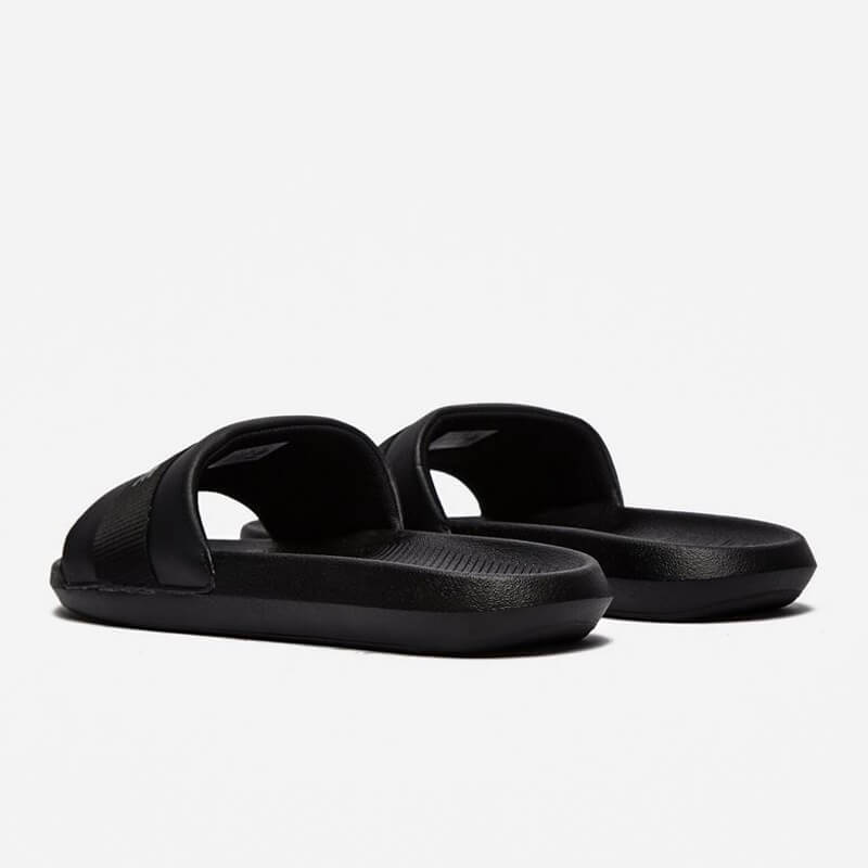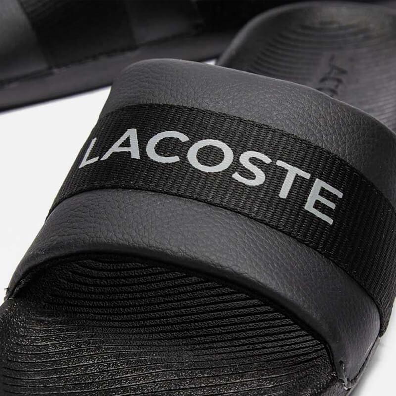 Ανδρικές παντόφλες της Lacoste από οικολογικό δέρμα με κροκό υφή και κέντημα με το επωνυμία της εταιρίας.