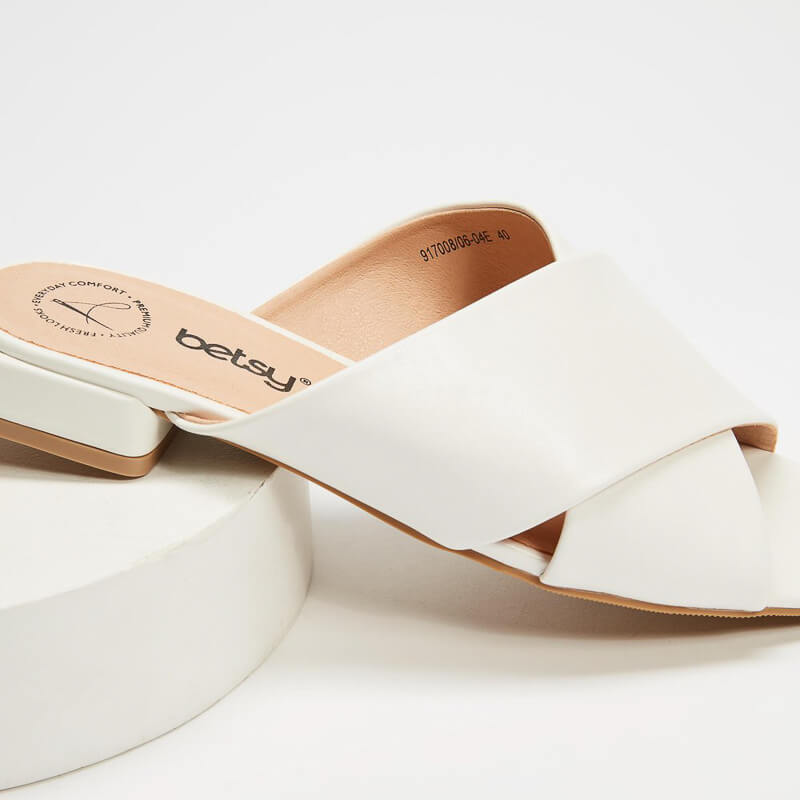 Ίσιο πέδιλο με φαρδιά λουριά από οικολογικό δέρμα υψηλής ποιότητας από την εταιρεία Betsy. Ένα πέδιλο με minimal σχεδιασμό ιδανικό για καθημερινές εμφανίσεις.