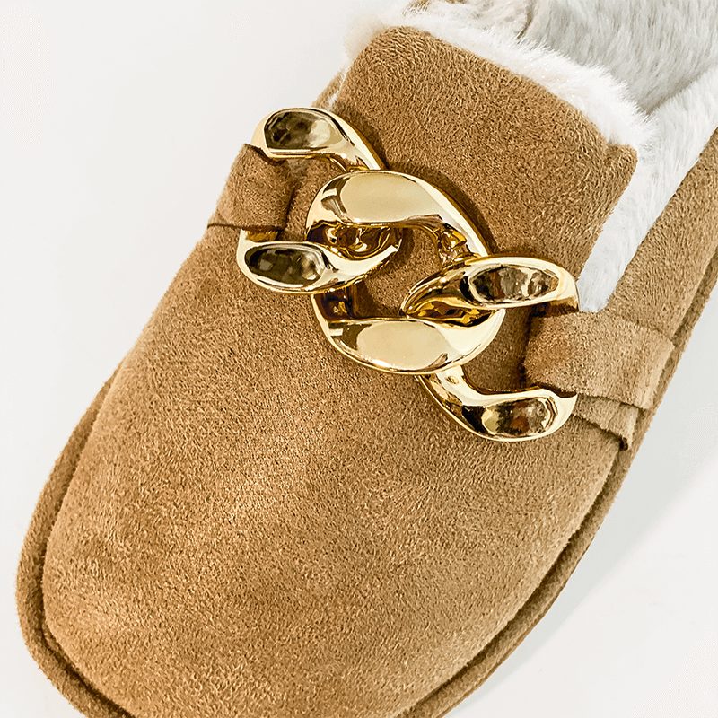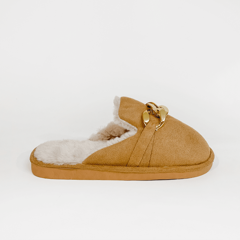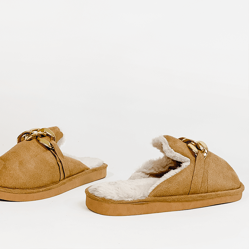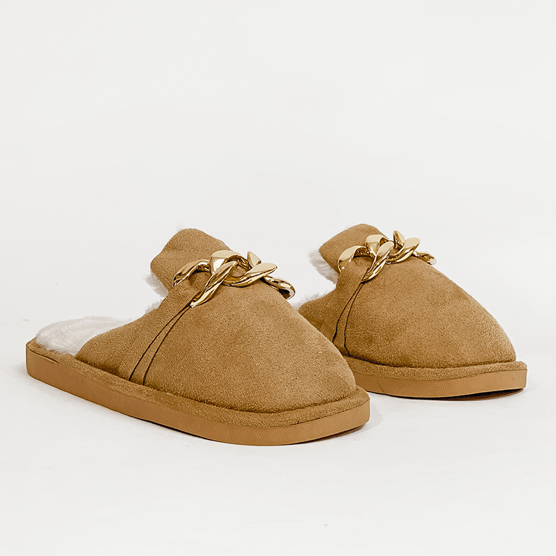 Παντόφλα Με Γούνα Και Διακοσμητική Αλυσίδα XL-2211 Κάμελ