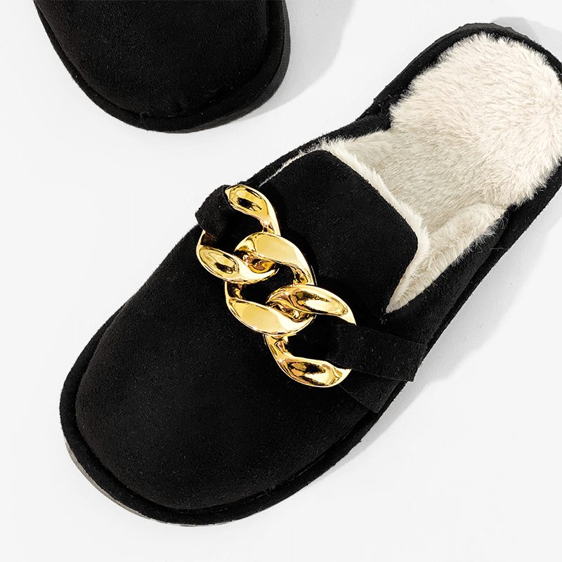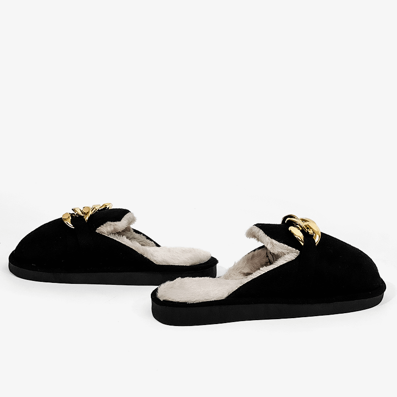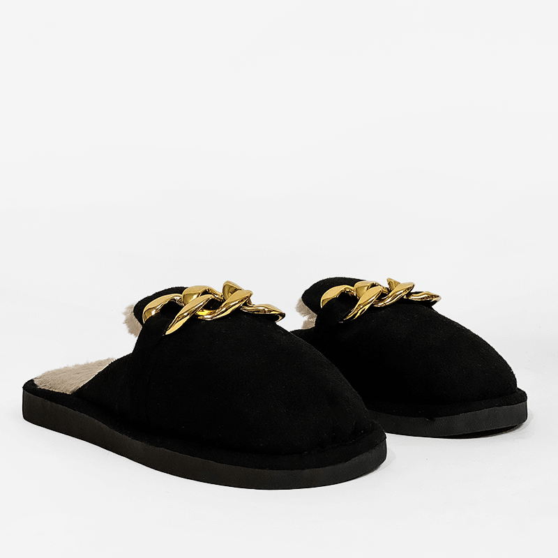 Παντόφλα Με Γούνα Και Διακοσμητική Αλυσίδα XL-2211 Μαύρο