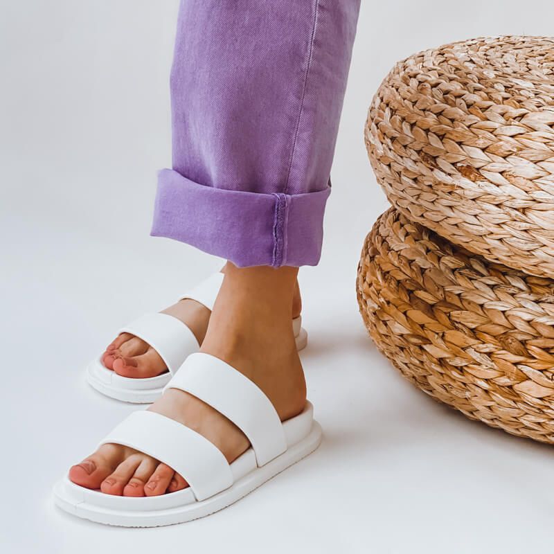 Γυναικείες παντόφλες με διακοσμητικά λουριά από αδιάβροχο υλικό και αντιολισθητική σόλα. Ο minimal σχεδιασμός και η μονοχρωμία τους τα καθιστούν μια εξαιρετική επιλογή από τις βόλτες σας στην πόλη μέχρι παραλία. Διαθέτουν μαλακό και άνετο πάτο για ανάλαφρα βήματα όλη μέρα.