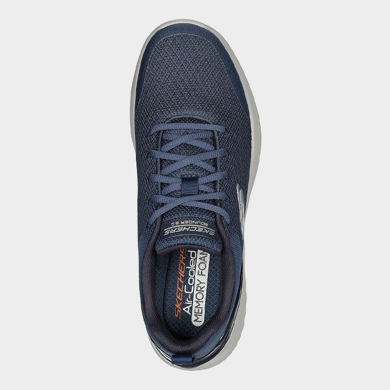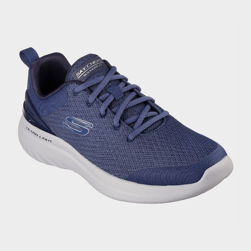 Παπούτσια για τρέξιμο της Skechers με άνω μέρος από ύφασμα υψηλής ποιότητας σε μπλε χρώμα. Διαθέτει μαλακό εσωτερικό πάτο Air-Cooled Memory Foam® με αντικραδασμική προστασία και εξαιρετικά ευέλικτη μεσαία σόλα. Ένα ελαφρύ παπούτσι που θα σας χαρίσει άνεση και στιλ στις αθλητικές και καθημερινές σας δραστηριότητες.
