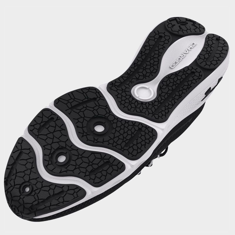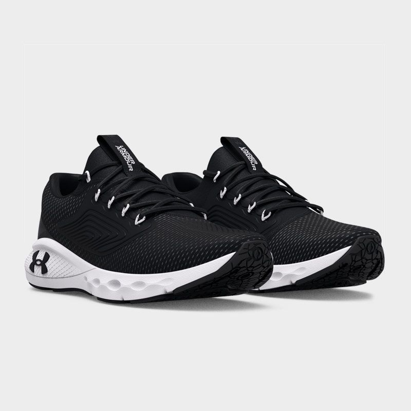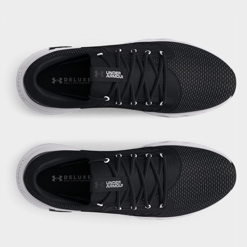 Παπούτσια για τρέξιμο της Under Armour με άνω μέρος από διαπνέον ύφασμα υψηλής ποιότητας σε μαύρο χρώμα. Διαθέτει ενδιάμεση σόλα Charged Cushioning® για απορρόφηση κραδασμών και εξωτερική σόλα από καουτσούκ με ανατομικά τοποθετημένες αυλακώσεις για μεγαλύτερη άνεση. Μία επιλογή που θα σας προσφέρει άνεση και σταθερή αίσθηση στις αθλητικές σας δραστηριότητες.