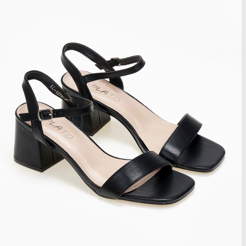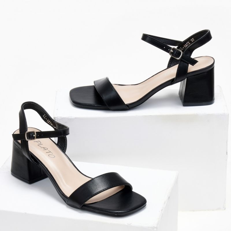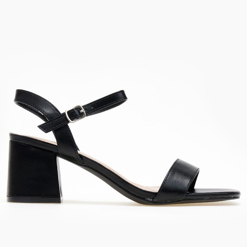 Ύψος τακουνιού: 6.5cm Υλικό: Οικολογικό δέρμα Χρώμα: Μαύρο Δέσιμο: Ρυθμιζόμενο λουράκι στον αστράγγαλο Τετράγωνο σταθερό τακούνι