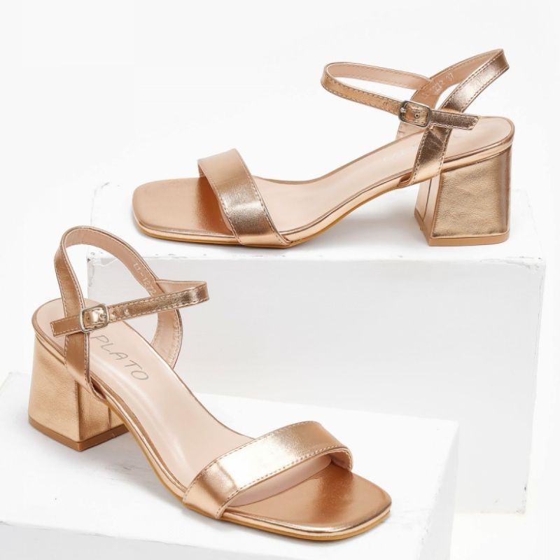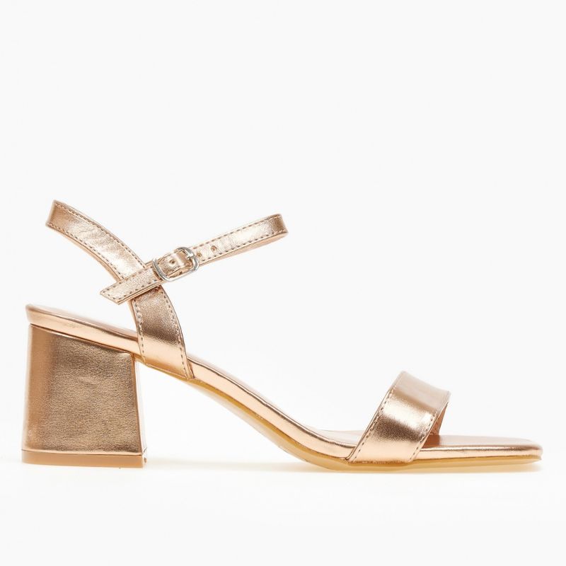 Ύψος τακουνιού: 6.5cm Υλικό: Οικολογικό δέρμα Χρώμα: Μπρονζέ Δέσιμο: Ρυθμιζόμενο λουράκι στον αστράγγαλο Τετράγωνο σταθερό τακούνι